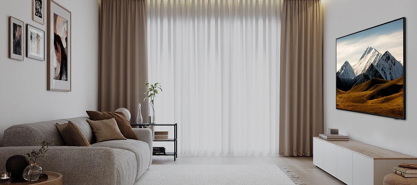 Das faszinierend filigrane Design lässt deinen TV beinahe mit der Wand verschmelzen.