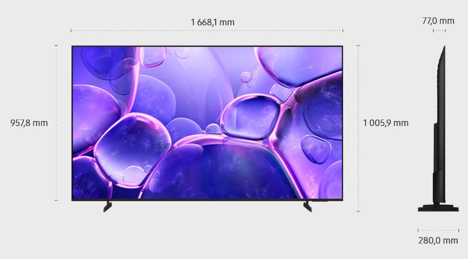 - Smart TV, Betriebssystem: Tizen OS, Digital Tuner: DVB-C, DVB-S2, DVB-T2