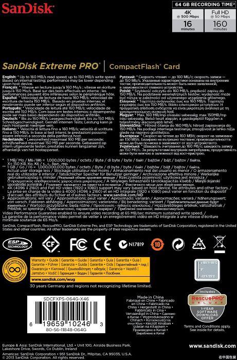 Die SanDisk Extreme PRO CompactFlash-Speicherkarte unterstützt als weltweit erste Karte mit hoher Speicherkapazität die Spezifikationen der Video Performance Guarantee (VPG-65) und stellt damit reibungslose Videoaufnahmen in 4K und Full HD sicher. Profis, die sich auf die Zuverlässigkeit ihrer Videoausrüstung verlassen müssen, finden bei dieser Speicherkarte genau die benötigte Leistung.