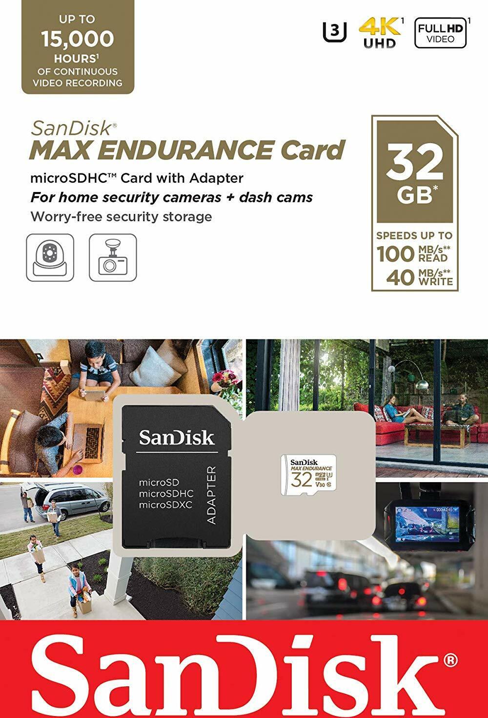 SanDisk Max Endurance microSDHC Speicherkarte 32GB Kit + SD Adapter 100MB/s, 40MB/s, UHS-I U3, Class 10, V30