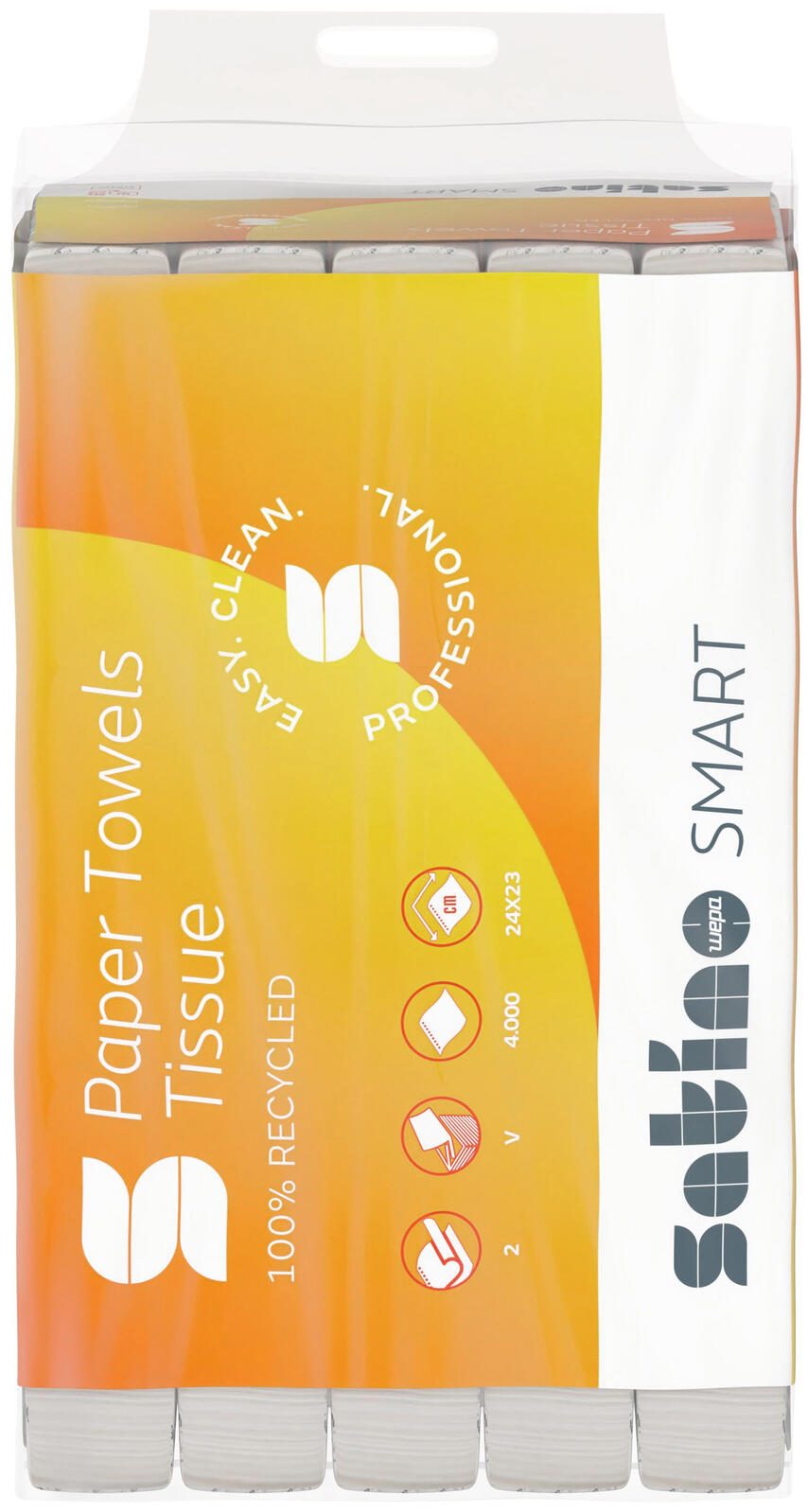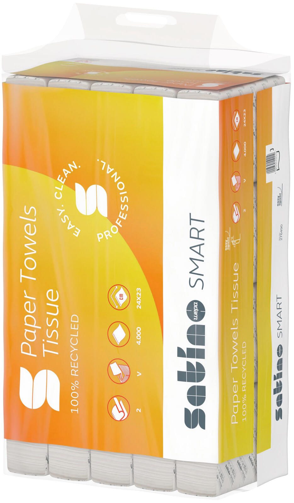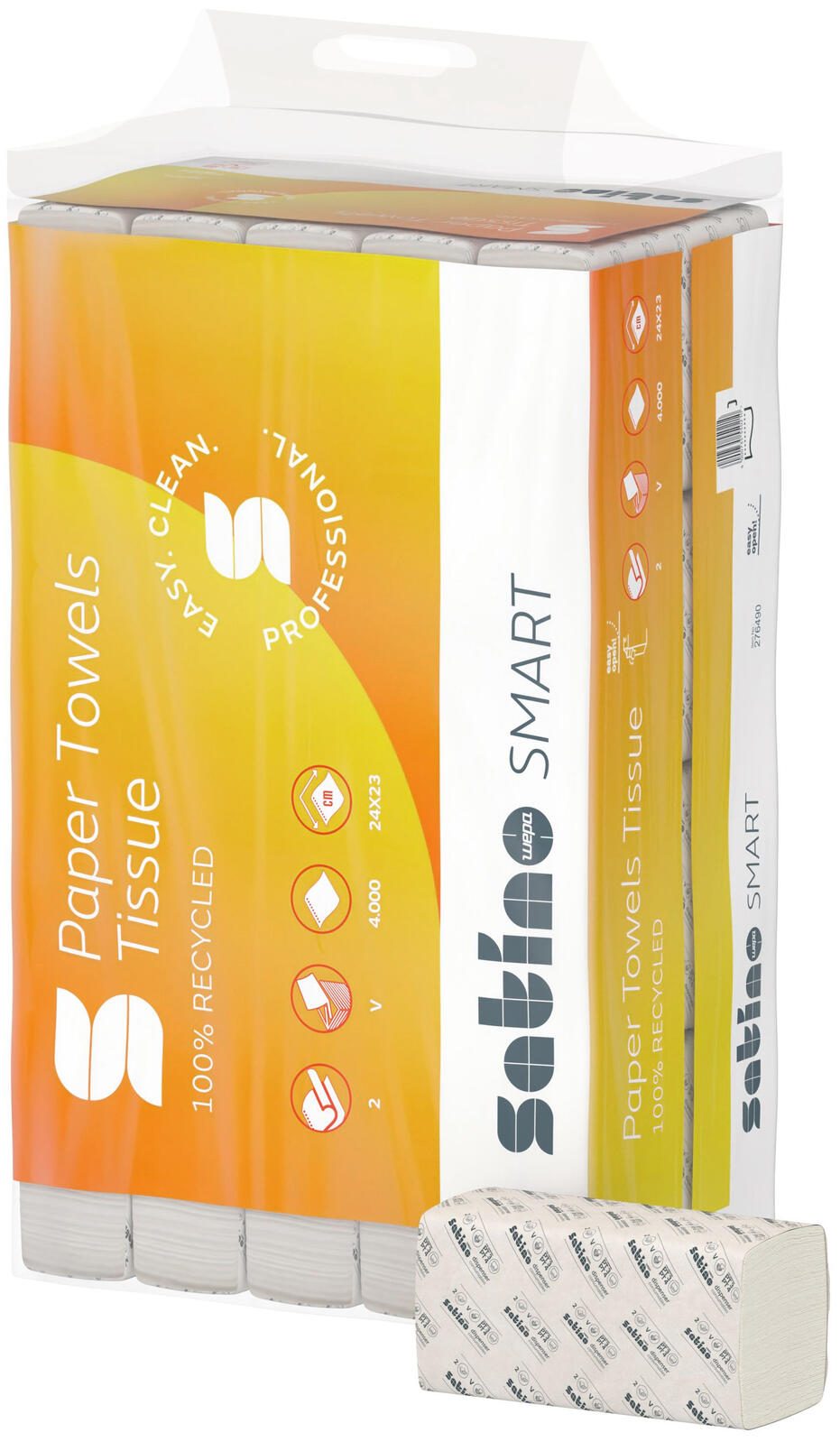 Die Satino by wepa Papierhandtücher smart 2-lagig bieten eine hervorragende Kombination aus Funktionalität und Umweltbewusstsein. Diese hochwertigen Papierhandtücher sind aus Recyclingpapier gefertigt und tragen somit aktiv zur Reduzierung des ökologischen Fußabdrucks bei. Mit einer Blattgröße von 23,0 x 24,0 cm sind sie ideal für den täglichen Gebrauch in deinem Haushalt oder in gewerblichen Einrichtungen. Die Zick-Zack-Falzung ermöglicht eine einfache und hygienische Entnahme der Tücher, sodass du immer ein frisches Handtuch zur Hand hast, ohne die anderen zu berühren. Jedes Tuch überzeugt durch seine 2-lagige Struktur, die für eine hohe Saugfähigkeit sorgt und gleichzeitig sanft zur Haut ist. Die weiße Farbe der Handtücher verleiht deinem Badezimmer oder deiner Küche ein frisches und sauberes Aussehen. Mit insgesamt 4.000 Tüchern pro Karton bist du bestens ausgestattet, egal ob für den privaten Gebrauch oder in der Gastronomie. Die Verpackungsart sorgt dafür, dass die Tücher stets ordentlich und geschützt aufbewahrt werden. Die Papierqualität ist sehr gut, was bedeutet, dass du dich auf eine zuverlässige Leistung verlassen kannst, egal ob beim Abtrocknen der Hände oder beim Wischen von Oberflächen. Die Satino by wepa Papierhandtücher smart 2-lagig sind nicht nur praktisch, sondern auch eine umweltfreundliche Wahl. Indem du dich für Recyclingpapier entscheidest, trägst du aktiv zur Nachhaltigkeit bei und unterstützt die Verwendung von Materialien, die weniger belastend für die Umwelt sind. Diese Handtücher sind die perfekte Lösung für alle, die Wert auf Qualität, Hygiene und Umweltschutz legen.Technische Daten
