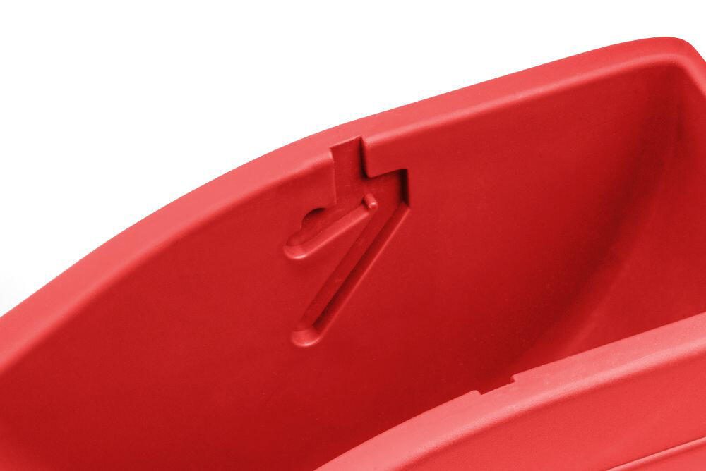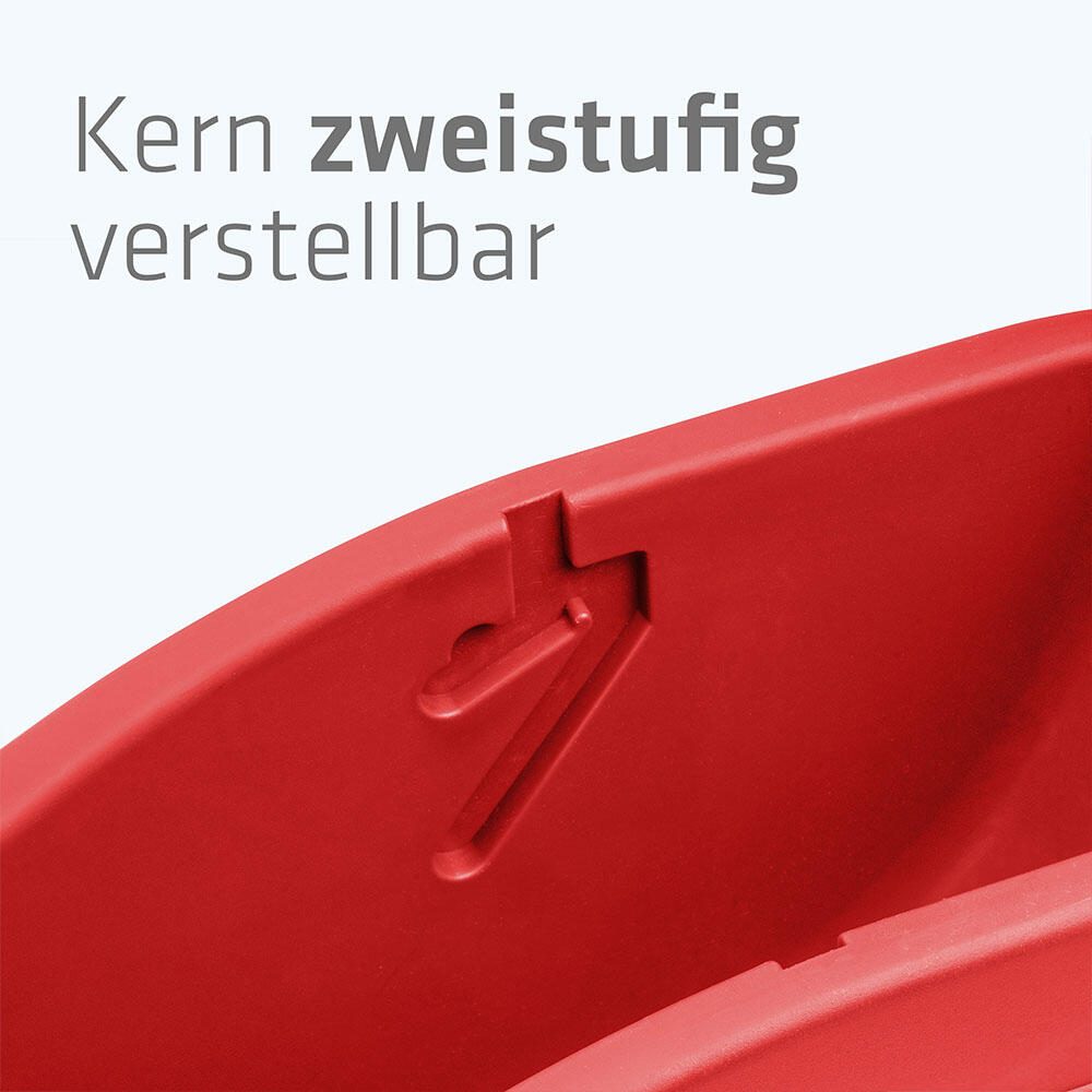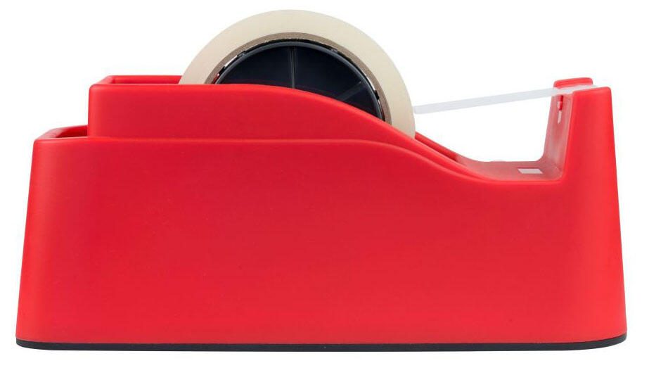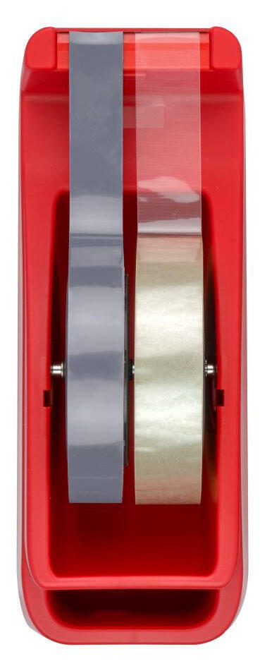 Der Tischabroller ist aus Kunststoff gefertigt, was ihn besonders leicht und dennoch robust macht. Die Farbkombination aus Rot und Weiß verleiht ihm eine frische und moderne Optik, die jeden Arbeitsplatz aufwertet.