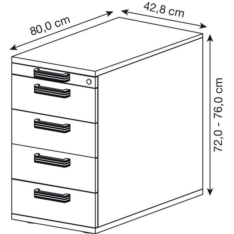 Die Serie SC50 von HAMMERBACHER ist bekannt für ihre durchdachten Lösungen und die Kombination aus Funktionalität und Ästhetik. Der Akandia Standcontainer ist nicht nur ein praktisches Möbelstück, sondern auch ein echter Blickfang, der deinen Arbeitsbereich aufwertet. Mit insgesamt vier Fächern/Schüben bietet er ausreichend Platz für Akten, Büromaterialien und persönliche Gegenstände, sodass du stets einen aufgeräumten und organisierten Arbeitsplatz genießen kannst.