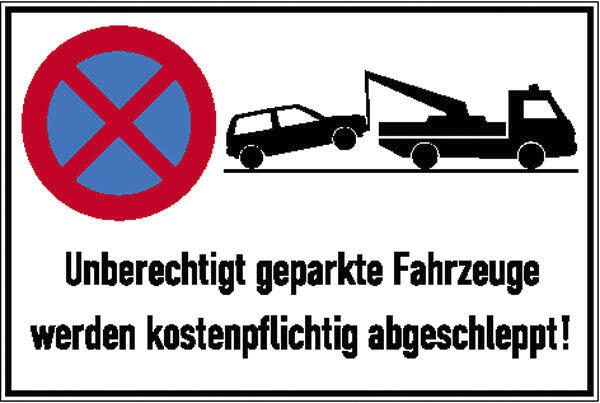 SafetyMarking® Verbotsschild Absolutes Halteverbot, unberechtigt geparkte Fahrzeuge werden kostenpflichtig abgeschleppt 60 cm x 40 cm