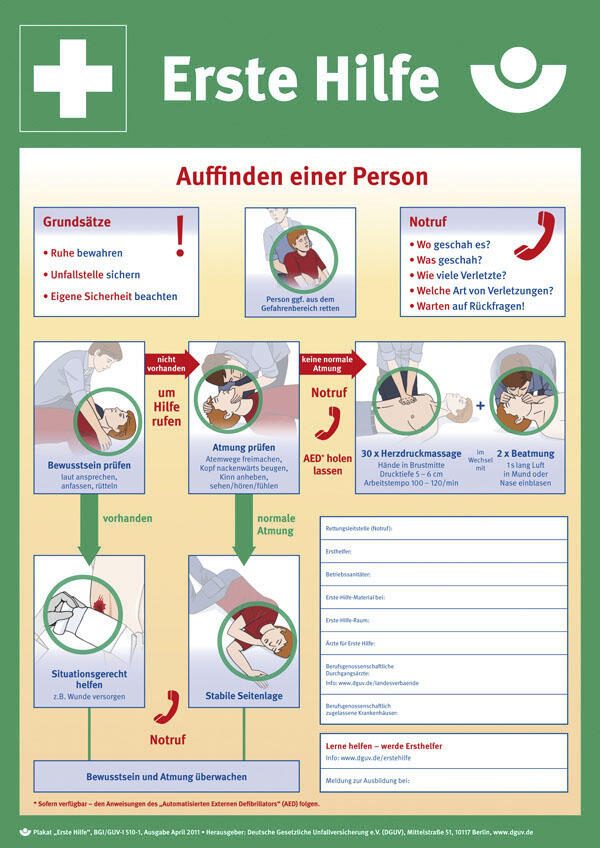 SafetyMarking® Rettungszeichen Anleitung zur Ersten Hilfe 40 cm x 56 cm