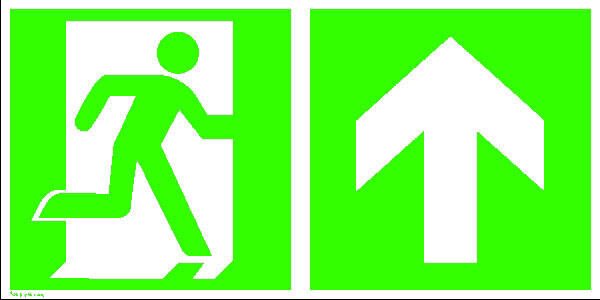 - Aufschrift: Notausgang rechts mit Zusatzzeichen: Richtungsangabe aufwärts bzw. geradeaus