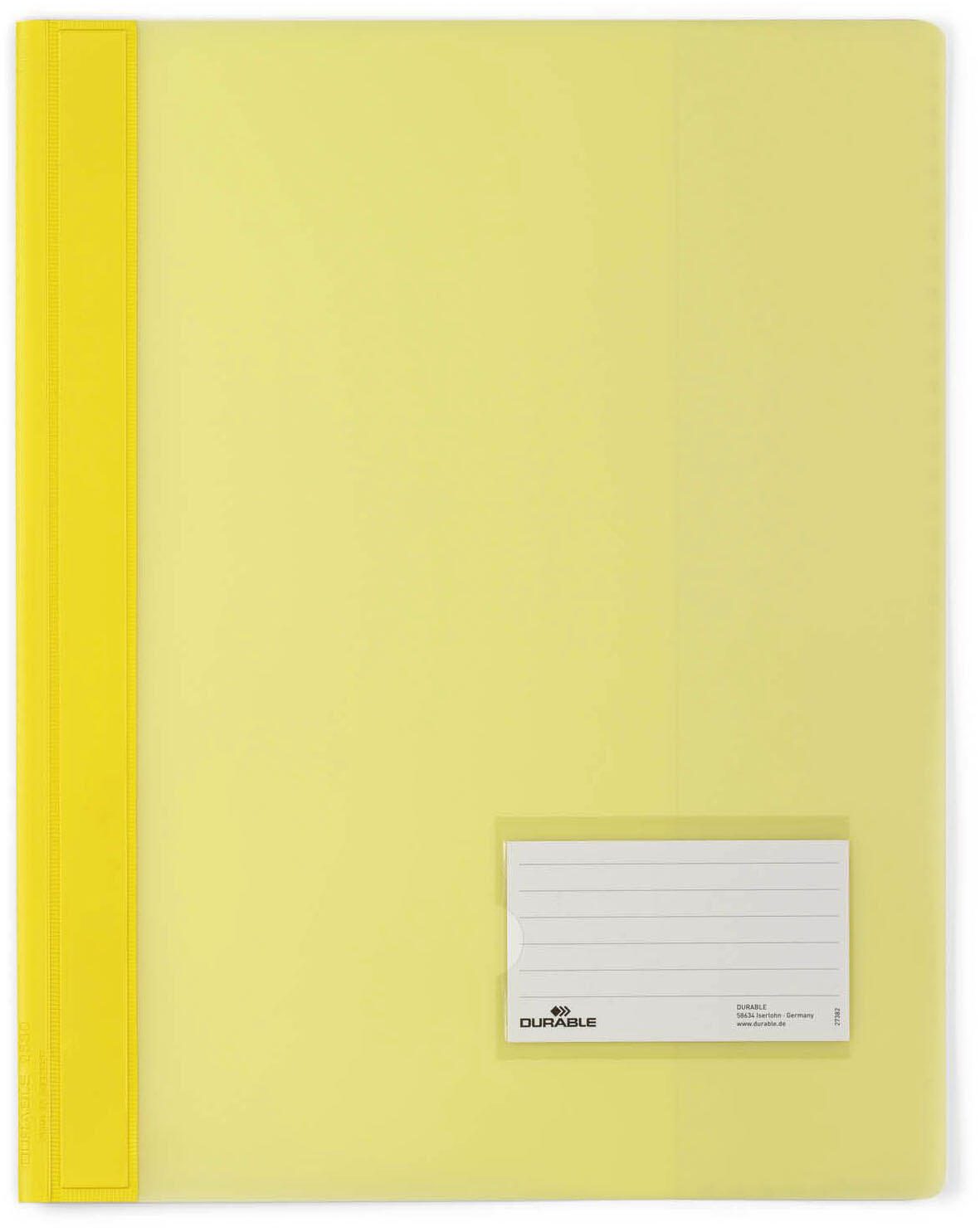 Dieser gelbe DURABLE Schnellhefter aus PVC ist die ideale Lösung, um deine Dokumente sicher und organisiert zu verwahren. Mit einer Fassungskapazität von ca. 150 Blatt bietet er ausreichend Platz für deine Unterlagen im DIN A4 überbreiten Format.