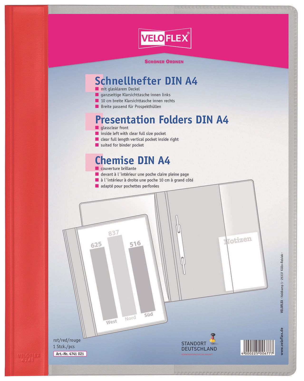 Der VELOFLEX Schnellhefter im Format DIN A4 überbreit ist die ideale Lösung für alle, die ihre Dokumente stilvoll und sicher aufbewahren möchten. Mit seiner auffälligen hellroten Farbe bringt dieser Schnellhefter nicht nur Farbe in dein Büro, sondern sorgt auch dafür, dass deine Unterlagen immer gut organisiert sind. Der transparente Vorderteil ermöglicht es dir, den Inhalt auf einen Blick zu erkennen, ohne den Schnellhefter öffnen zu müssen.