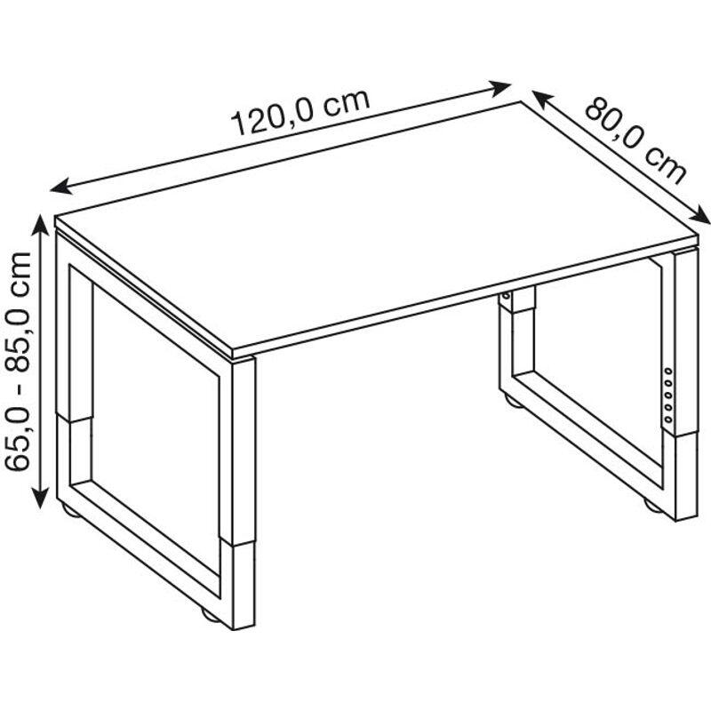 Der HAMMERBACHER höhenverstellbare Schreibtisch VRS12/E/S in Eiche vereint Funktionalität und modernes Design. Die Tischplatte besteht aus robuster Spanplatte, die nicht nur eine ansprechende Optik bietet, sondern auch eine hohe Stabilität gewährleistet. Das O-Fuß-Gestell aus hochwertigem Stahl in Silber sorgt für zusätzliche Festigkeit und Langlebigkeit. Mit den Maßen von 120 cm in der Breite, 80 cm in der Tiefe und einer verstellbaren Höhe von 65 cm passt dieser Schreibtisch perfekt in jedes Büro oder Homeoffice. Die elegante Eichenfarbe verleiht dem Schreibtisch eine warme und einladende Atmosphäre, die sich harmonisch in verschiedene Einrichtungsstile einfügt. Der höhenverstellbare Mechanismus ermöglicht es Ihnen, die Tischhöhe individuell anzupassen, sodass sowohl im Sitzen als auch im Stehen komfortabel gearbeitet werden kann. Dies fördert nicht nur die Ergonomie, sondern kann auch die Produktivität steigern, indem es Ihnen ermöglicht, die Arbeitsposition nach Ihren Bedürfnissen zu variieren. Der Schreibtisch VRS12/E/S ist ideal für alle, die Wert auf Qualität und Design legen. Er bietet ausreichend Platz für Ihren Laptop, Bücher und andere Arbeitsmaterialien, während die schlichte Eleganz des Designs dafür sorgt, dass Ihr Arbeitsbereich stets aufgeräumt und stilvoll wirkt. Ob für das heimische Büro oder den Arbeitsplatz im Unternehmen, dieser höhenverstellbare Schreibtisch ist eine hervorragende Wahl, die sowohl Funktionalität als auch Ästhetik vereint.Technische Daten