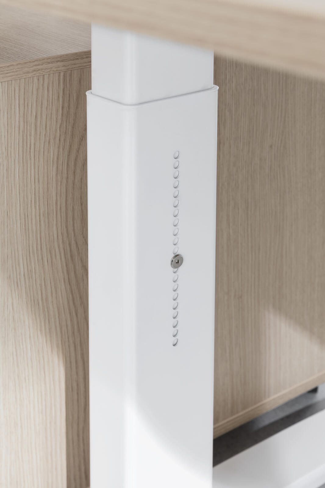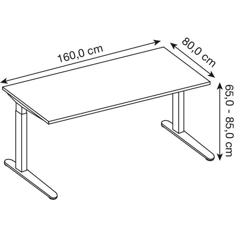 Mit den Maßen von 160 cm in der Breite, 80 cm in der Tiefe und einer Höhe von 65 cm lässt sich der Schreibtisch optimal in verschiedene Büroumgebungen integrieren. Die Möglichkeit, die Höhe des Schreibtisches individuell anzupassen, fördert eine ergonomische Arbeitsweise und sorgt für eine angenehme Körperhaltung, egal ob Sie sitzen oder stehen. Dies ist besonders wichtig, um gesundheitliche Beschwerden, die durch langes Sitzen entstehen können, vorzubeugen.