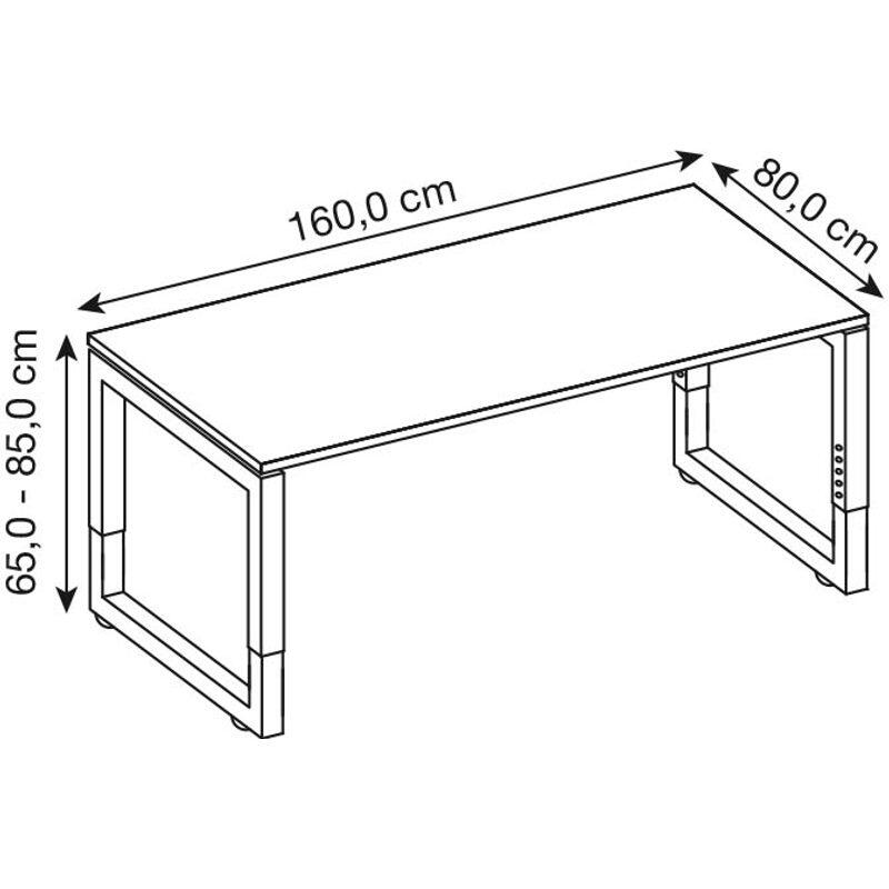 Der HAMMERBACHER höhenverstellbare Schreibtisch VRS16/5/S in lichtgrau vereint Funktionalität und modernes Design in einem Möbelstück, das ideal für Ihr Büro oder Home Office ist. Mit einer großzügigen Tischplatte aus robuster Spanplatte bietet dieser Schreibtisch genügend Platz für Ihren Computer, Unterlagen und weitere Arbeitsutensilien. Die Maße von 160 cm in der Breite und 80 cm in der Tiefe sowie eine Höhe von 65 cm ermöglichen eine angenehme Arbeitsposition und fördern so Ihre Produktivität. Das stabile Kufen-Gestell aus hochwertigem Stahl in silberner Farbe sorgt nicht nur für eine ansprechende Optik, sondern auch für eine hohe Stabilität und Langlebigkeit. Die Kombination aus lichtgrauer Tischplatte und silbernem Gestell verleiht Ihrem Arbeitsplatz eine moderne und elegante Note, die sich harmonisch in verschiedene Einrichtungsstile einfügt. Ein herausragendes Merkmal des HAMMERBACHER Schreibtisches ist die Höhenverstellbarkeit, die es Ihnen ermöglicht, die Tischhöhe individuell anzupassen. Diese Funktion fördert nicht nur eine ergonomische Haltung, sondern unterstützt auch einen gesunden Wechsel zwischen Sitzen und Stehen während Ihrer Arbeitszeit. So können Sie Rückenschmerzen und Verspannungen vorbeugen, die oft durch langes Sitzen entstehen. Dieser Schreibtisch ist nicht nur praktisch, sondern auch äußerst vielseitig. Er eignet sich perfekt für das Arbeiten im Home Office, für kreative Projekte oder als stilvoller Arbeitsplatz in einem professionellen Umfeld. Der HAMMERBACHER höhenverstellbare Schreibtisch VRS16/5/S ist die ideale Wahl für alle, die Wert auf Qualität, Komfort und ein ansprechendes Design legen.Technische Daten