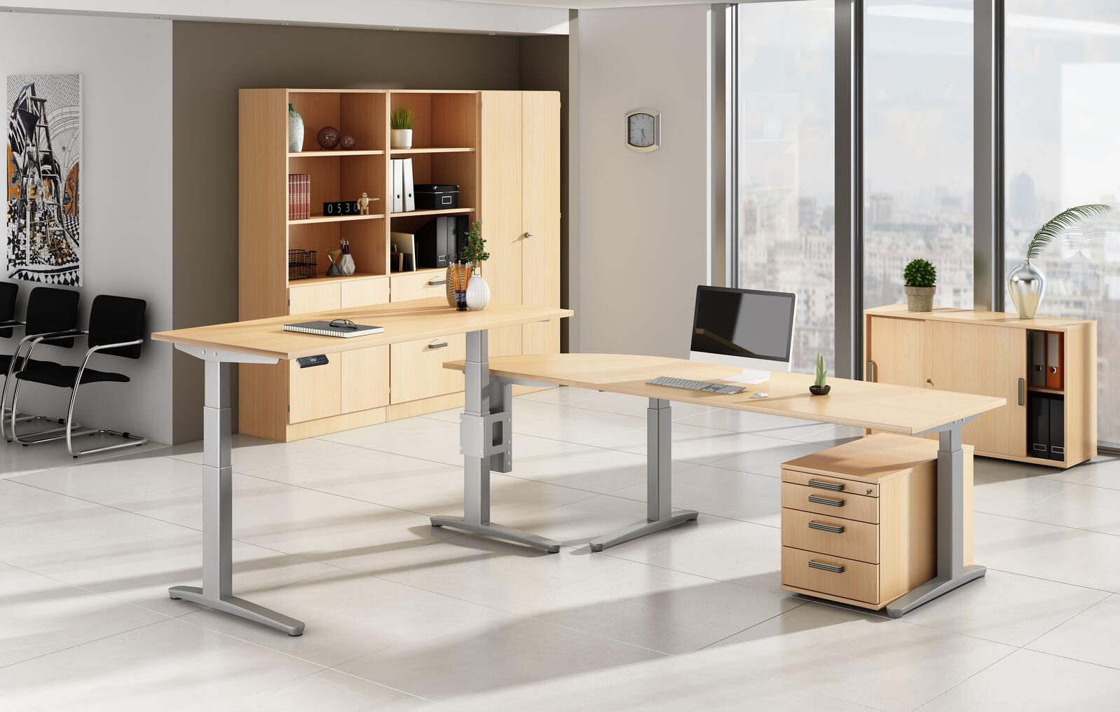 HAMMERBACHER höhenverstellbarer Schreibtisch VXB19/6/SS buche, silber
