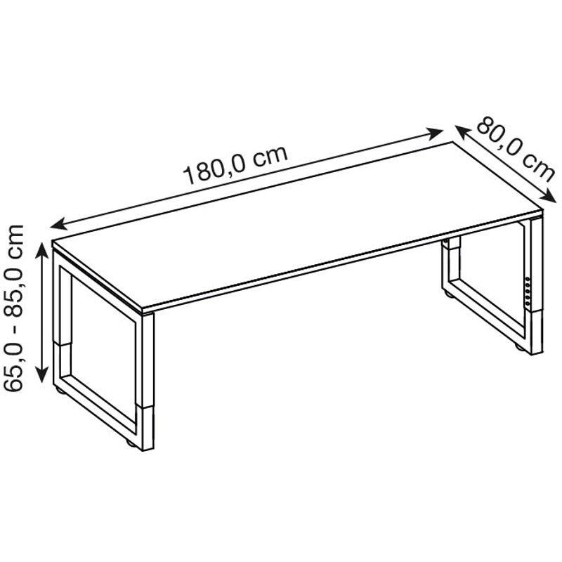 Der HAMMERBACHER höhenverstellbare Schreibtisch VRS19/6/S in Buche vereint Funktionalität und modernes Design, um Ihnen ein optimales Arbeitsumfeld zu bieten. Mit einer großzügigen Tischplatte aus Spanplatte und einem stabilen Kufen-Gestell aus Stahl in ansprechendem Silber, ist dieser Schreibtisch nicht nur robust, sondern auch ästhetisch ansprechend. Die Maße von 180 cm in der Breite, 80 cm in der Tiefe und 65 cm in der Höhe machen ihn ideal für verschiedene Arbeitsbereiche, sei es im Home Office oder im professionellen Büro. Die Höhenverstellbarkeit des Schreibtisches ermöglicht es Ihnen, die optimale Höhe für Ihre individuellen Bedürfnisse einzustellen. Dies fördert nicht nur eine ergonomische Körperhaltung, sondern kann auch dazu beitragen, Rückenbeschwerden und Ermüdung während langer Arbeitsstunden zu reduzieren. Die natürliche Buche-Oberfläche verleiht dem Schreibtisch eine warme und einladende Ausstrahlung, die sich harmonisch in jede Büroumgebung einfügt. Ein weiterer Vorteil des HAMMERBACHER Schreibtisches ist die einfache Montage und die durchdachte Konstruktion. Ohne zusätzliche Fächer oder Schübe bleibt der Tisch übersichtlich und bietet ausreichend Platz für Ihren Laptop, Dokumente und weitere Arbeitsmaterialien. Die Kombination aus hochwertigem Material und durchdachtem Design macht diesen Schreibtisch zu einer hervorragenden Wahl für alle, die Wert auf Qualität und Funktionalität legen. Investieren Sie in Ihren Arbeitsplatz und profitieren Sie von den Vorteilen eines höhenverstellbaren Schreibtisches, der nicht nur Ihre Produktivität steigert, sondern auch Ihr Wohlbefinden während der Arbeit verbessert. Der HAMMERBACHER höhenverstellbare Schreibtisch VRS19/6/S ist die perfekte Lösung für alle, die einen modernen und ergonomischen Arbeitsplatz schaffen möchten.Technische Daten