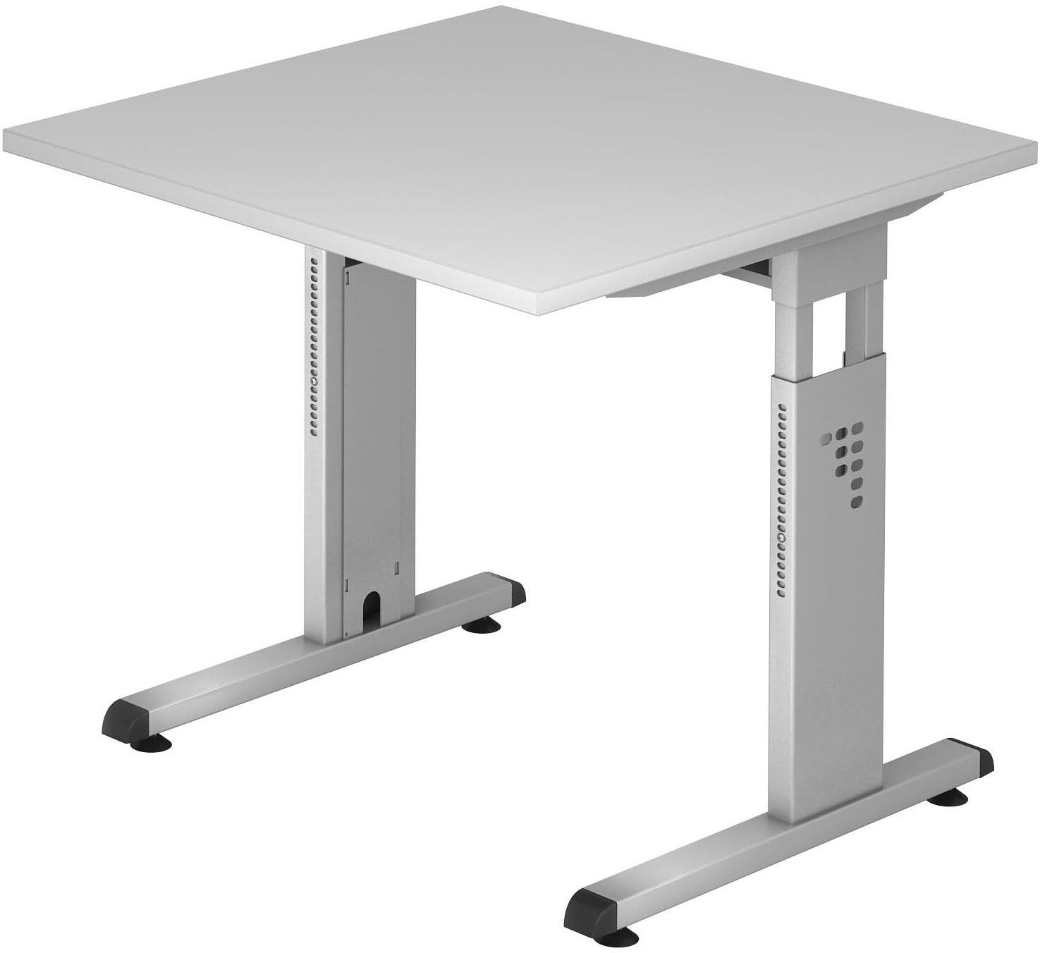 Das C-Fuß-Gestell in Silber (RAL 9006) bietet nicht nur eine ansprechende Optik, sondern auch eine solide Basis, die den Anforderungen des täglichen Gebrauchs standhält. Die Tischplatte hat eine Stärke von 2,5 cm, was zusätzlich zur Langlebigkeit des Produkts beiträgt. Mit seiner quadratischen Form und der modernen Farbgestaltung fügt sich der HAMMERBACHER Schreibtisch harmonisch in verschiedene Einrichtungsstile ein und ist somit die ideale Wahl für jeden modernen Arbeitsplatz.