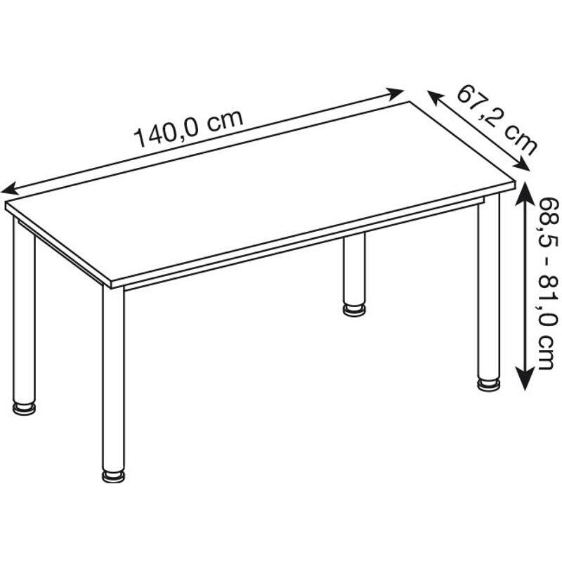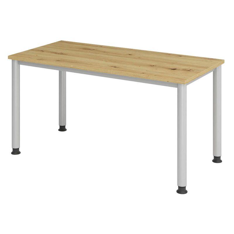 Der HAMMERBACHER Schreibtisch VHS614/R/S in Asteiche vereint modernes Design mit funktionaler Eleganz und ist die ideale Wahl für Ihr Homeoffice oder Arbeitszimmer. Die Tischplatte besteht aus hochwertiger Spanplatte, die nicht nur robust, sondern auch pflegeleicht ist. Die natürliche Asteiche-Optik verleiht dem Schreibtisch eine warme und einladende Ausstrahlung, die sich harmonisch in jede Einrichtung integriert. Das stabile 4-Fuß-Gestell aus silbernem Stahl sorgt für eine hohe Standfestigkeit und Langlebigkeit, sodass Sie sich auf die Qualität dieses Möbelstücks verlassen können. Mit den Maßen von 140 cm in der Breite, 67.2 cm in der Tiefe und 68.5 cm in der Höhe bietet der Schreibtisch ausreichend Platz für Ihren Laptop, Bücher und andere Arbeitsmaterialien, während er gleichzeitig nicht zu viel Raum in Ihrem Büro einnimmt. Ein weiterer Vorteil des HAMMERBACHER Schreibtisches ist die durchdachte Gestaltung, die Ihnen eine angenehme Arbeitsumgebung ermöglicht. Die klare Linienführung und das schlichte Design fördern nicht nur die Konzentration, sondern schaffen auch einen stilvollen Arbeitsplatz. Da der Schreibtisch keine Fächer oder Schubladen hat, können Sie ihn flexibel nach Ihren Bedürfnissen gestalten und organisieren. Der Schreibtisch HS614 in Asteiche ist nicht nur praktisch, sondern auch ein ästhetisches Highlight in Ihrem Raum. Er kombiniert Funktionalität mit zeitgemäßem Stil und wird so zu einem unverzichtbaren Element in Ihrem Arbeitsalltag. Erleben Sie die Vorzüge eines durchdachten Möbelstücks, das Ihnen sowohl Komfort als auch eine ansprechende Optik bietet.Technische Daten