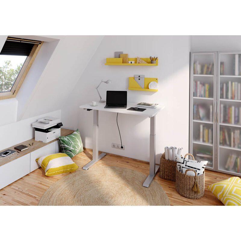 Die großzügigen Maße von 120 cm in der Breite, 67.2 cm in der Tiefe und 71 cm in der Höhe bieten ausreichend Platz für Laptop, Bücher und Büromaterialien. Diese Dimensionen machen den Schreibtisch zu einer perfekten Wahl für kleine und mittelgroße Räume, ohne dabei Kompromisse bei der Funktionalität einzugehen. Die schlichte weiße Farbgebung fügt sich harmonisch in jede Raumgestaltung ein und sorgt für eine angenehme Arbeitsatmosphäre.
