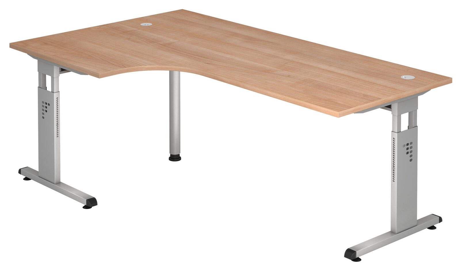 Der HAMMERBACHER VOS82/N/S ist ein eleganter und funktionaler höhenverstellbarer Schreibtisch, der sich ideal für moderne Arbeitsumgebungen eignet. Mit einer verstellbaren Höhe von 65 bis 85 cm ermöglicht er eine individuelle Anpassung an Ihre Bedürfnisse, sodass Sie sowohl im Sitzen als auch im Stehen arbeiten können. Dies fördert nicht nur eine gesunde Körperhaltung, sondern steigert auch Ihre Produktivität und Konzentration. Die Tischplatte aus hochwertiger Spanplatte in ansprechendem Nussbaum-Farbton verleiht dem Schreibtisch eine warme und einladende Ausstrahlung. Das robuste Stahlgestell in silberner Ausführung sorgt für Stabilität und Langlebigkeit, während das C-Fuß-Gestell eine optimale Beinfreiheit gewährleistet. Diese durchdachte Konstruktion macht den Schreibtisch nicht nur funktional, sondern auch zu einem stilvollen Möbelstück, das in jedes Büro oder Homeoffice passt. Der HAMMERBACHER VOS82/N/S bietet Ihnen die Möglichkeit, Ihre Arbeitsumgebung nach Ihren Wünschen zu gestalten. Die Höhenverstellung erfolgt mühelos, sodass Sie jederzeit zwischen den verschiedenen Positionen wechseln können, um die für Sie angenehmste Haltung zu finden. Dies ist besonders vorteilhaft für Menschen, die lange Stunden am Schreibtisch verbringen, da es Rücken- und Nackenbeschwerden vorbeugen kann. Mit einem klaren und modernen Design fügt sich dieser Schreibtisch harmonisch in jede Büroeinrichtung ein. Er ist nicht nur funktional, sondern auch ästhetisch ansprechend, was ihn zu einer hervorragenden Wahl für alle macht, die Wert auf Qualität und Design legen. Der HAMMERBACHER VOS82/N/S ist die perfekte Kombination aus Stil und Funktionalität, die Ihr Arbeitsumfeld bereichert.Technische Daten