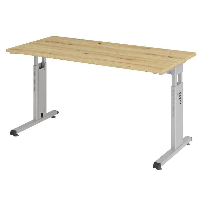Der HAMMERBACHER Schreibtisch VOS614/R/S in Asteiche vereint modernes Design mit funktionaler Eleganz. Die Tischplatte besteht aus robuster Spanplatte, die eine langlebige und pflegeleichte Oberfläche bietet. In Kombination mit dem stabilen C-Fuß-Gestell aus hochwertigem Stahl, das in einem ansprechenden Silberton gehalten ist, garantiert dieser Schreibtisch nicht nur eine ansprechende Optik, sondern auch eine hohe Stabilität und Standfestigkeit.