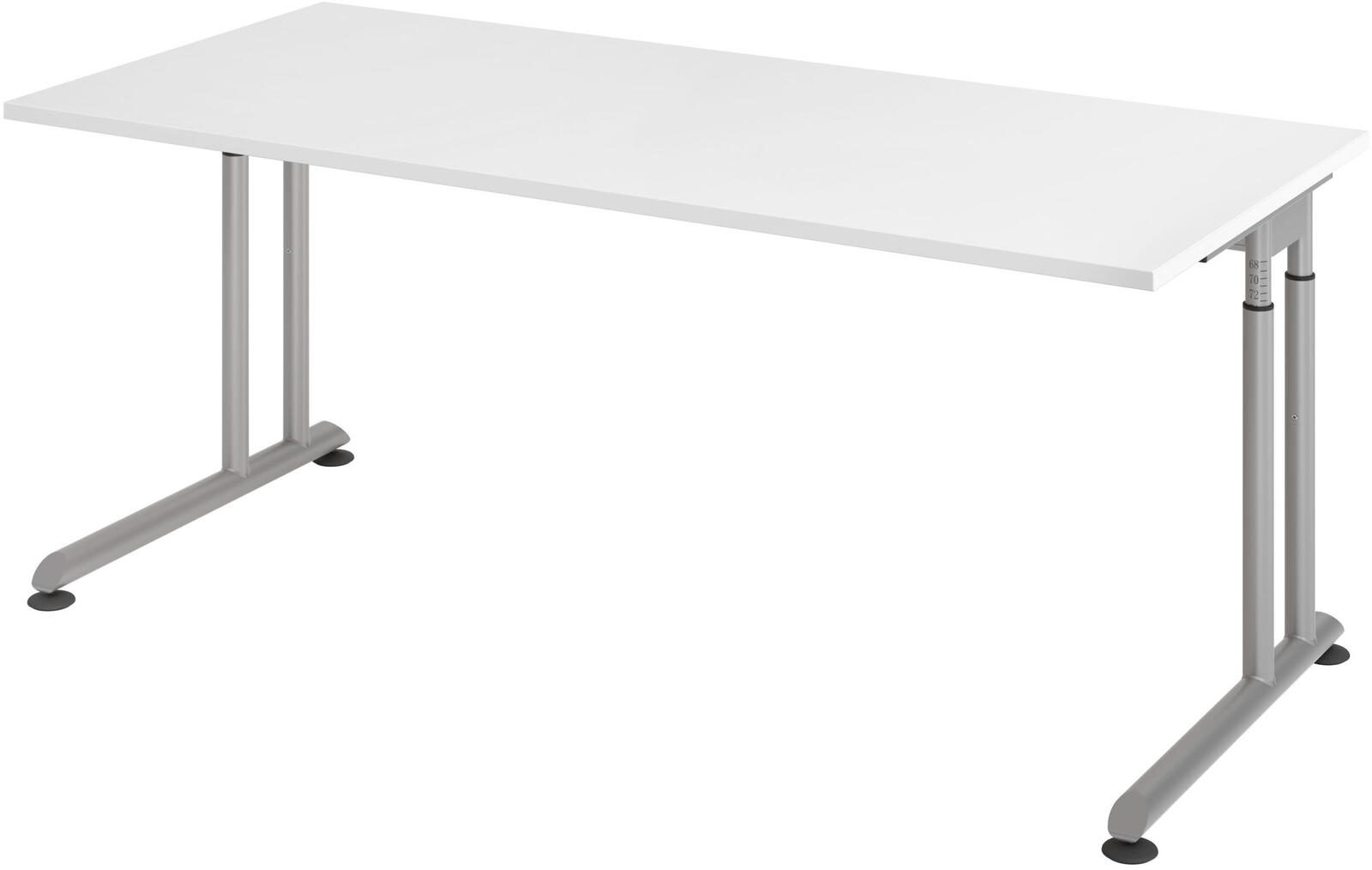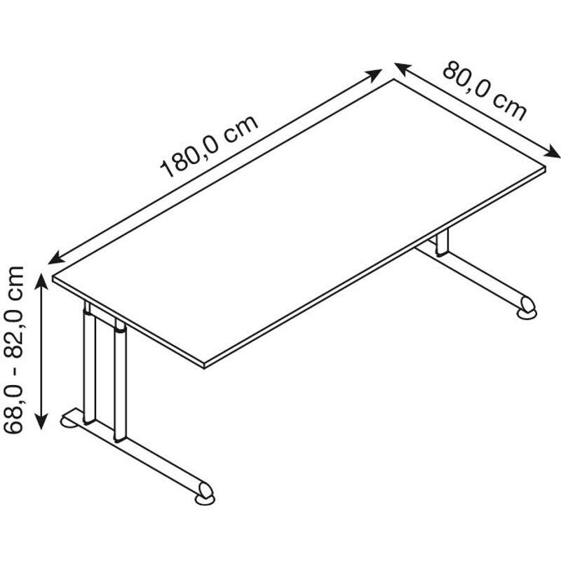 Der HAMMERBACHER höhenverstellbare Schreibtisch VZS19/W/S in elegantem Weiß ist die perfekte Lösung für modernes Arbeiten und ergonomisches Sitzen. Mit seiner großzügigen Tischplatte aus robuster Spanplatte und einem stabilen Stahlgestell bietet dieser Schreibtisch sowohl Funktionalität als auch Stil. Die Kombination aus einem C-Fuß-Gestell in Silber und der weißen Tischplatte sorgt für ein harmonisches Gesamtbild, das in jede Büroeinrichtung passt. Mit den Maßen von 180 cm in der Breite, 80 cm in der Tiefe und einer Höhe von 68 cm ist der Schreibtisch großzügig dimensioniert und bietet ausreichend Platz für Computer, Unterlagen und persönliche Gegenstände. Die Höhenverstellbarkeit ermöglicht es Ihnen, die optimale Arbeitshöhe für Ihre individuellen Bedürfnisse einzustellen, wodurch eine gesunde Körperhaltung gefördert wird und Verspannungen vorgebeugt werden können. Dies ist besonders wichtig für Menschen, die lange Stunden am Schreibtisch verbringen. Der HAMMERBACHER Schreibtisch ZS19 ist nicht nur praktisch, sondern auch ästhetisch ansprechend. Die schlichte, weiße Oberfläche lässt sich leicht reinigen und sorgt dafür, dass Ihr Arbeitsbereich stets ordentlich und einladend wirkt. Die Verwendung hochwertiger Materialien garantiert eine lange Lebensdauer und Stabilität, sodass Sie sich auf Ihre Arbeit konzentrieren können, ohne sich um die Qualität Ihres Mobiliars sorgen zu müssen. Ob im Homeoffice oder im professionellen Büro, dieser Schreibtisch erfüllt höchste Ansprüche an Design und Funktionalität. Die klare Linienführung und der moderne Farbton machen ihn zu einem zeitlosen Möbelstück, das sowohl für kreative als auch für administrative Tätigkeiten geeignet ist. Entdecken Sie die Vorteile eines ergonomischen Arbeitsplatzes mit dem HAMMERBACHER höhenverstellbaren Schreibtisch.Technische Daten