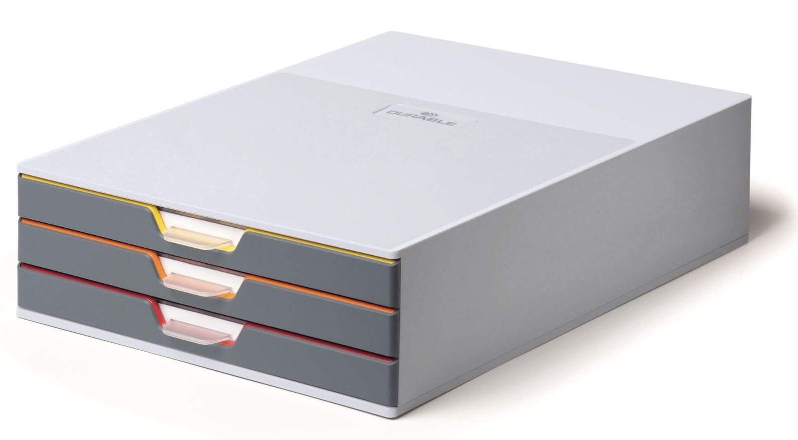 DURABLE Schubladenboxen Schubladenbox Varicolor 3Schüb 760327 DIN C4 28,0 x 35,6 x 9,5 cm