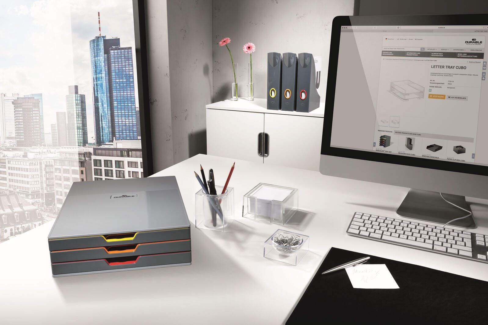 Die DURABLE Schubladenbox Varicolor 3Schüb 760327 ist die ideale Lösung, um dein Büro aufgeräumt zu halten und gleichzeitig Akzente zu setzen. Mit ihrem durchdachten Design und der hochwertigen Verarbeitung ist sie nicht nur funktional, sondern auch ein Blickfang auf deinem Schreibtisch.