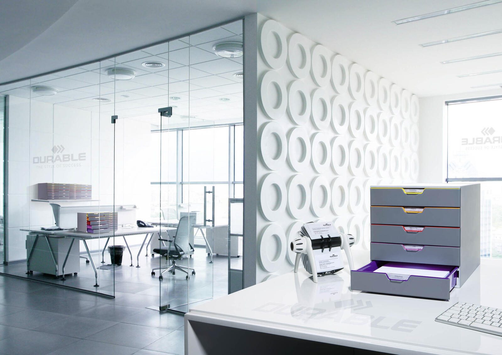 Die DURABLE Schubladenbox Varicolor 5schüb 760527 ist Teil der VARICOLOR® Serie des renommierten Herstellers DURABLE. Diese graue Schubladenbox mit bunten Farblinien vereint Stil und Funktionalität und hilft dir dabei, deinen Arbeitsplatz optimal zu organisieren.