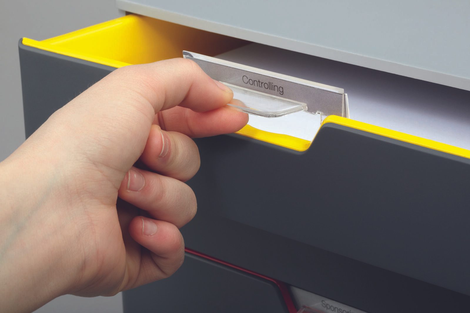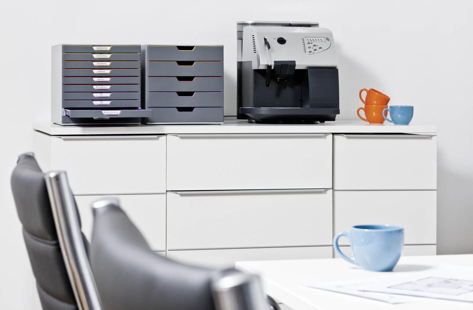 - Farbe Schublade: dunkelgrau mit bunten Farblinien
