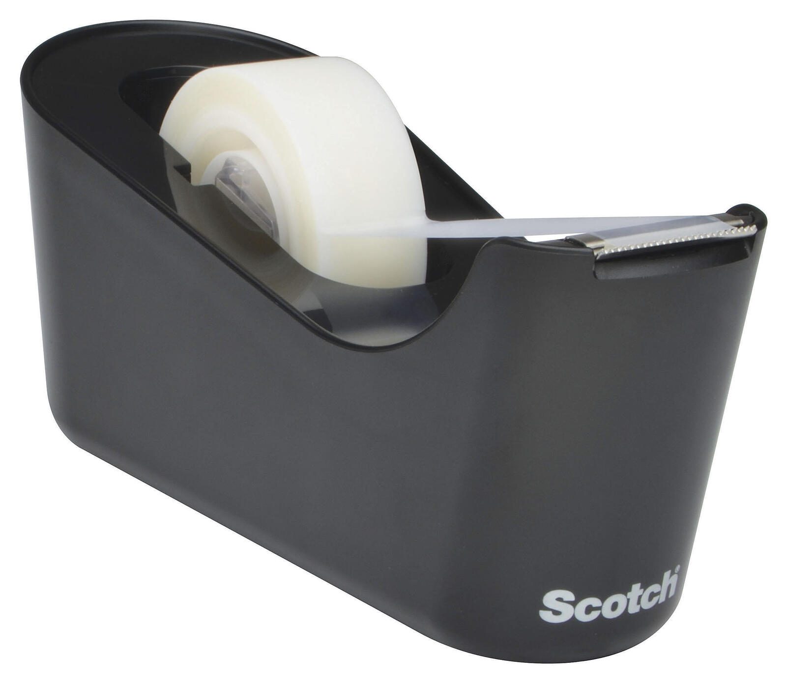 Der Scotch Tischabroller in elegantem Schwarz vereint Funktionalität und ansprechendes Design in einem praktischen Büroaccessoire. Dieser Klebefilmabroller ist nicht nur ein unverzichtbares Hilfsmittel für jeden Arbeitsplatz, sondern auch ein stilvolles Element, das sich harmonisch in jede Umgebung einfügt. Mit einem Kerndurchmesser von 26 mm bietet der Tischabroller ausreichend Platz für verschiedene Klebefilmrollen, sodass du immer den richtigen Film zur Hand hast. Hergestellt aus hochwertigem Kunststoff, ist der Abroller nicht nur robust, sondern auch leicht zu handhaben. Die schwarze Farbgebung verleiht ihm eine moderne Note und macht ihn zu einem idealen Begleiter für dein Büro oder deinen Basteltisch. Ein herausragendes Merkmal des Scotch Tischabrollers ist seine Antirutsch-Beschichtung, die für Stabilität und Sicherheit sorgt. Du kannst den Abroller mühelos mit einer Hand bedienen, ohne dass er beim Abreißen des Klebefilms verrutscht. Dies ermöglicht dir ein schnelles und präzises Arbeiten, egal ob du Geschenke einpackst, Dokumente zusammenfügst oder kreative Projekte umsetzt. Der Scotch Tischabroller wird mit einem Klebefilm geliefert, sodass du sofort mit deiner Arbeit beginnen kannst. Die Kombination aus durchdachtem Design und praktischer Funktionalität macht diesen Abroller zu einem unverzichtbaren Werkzeug für alle, die Wert auf Qualität und Effizienz legen. Lass dich von der Qualität und dem Komfort des Scotch Tischabrollers überzeugen und erlebe, wie einfach das Arbeiten mit Klebefilm sein kann.Technische Daten