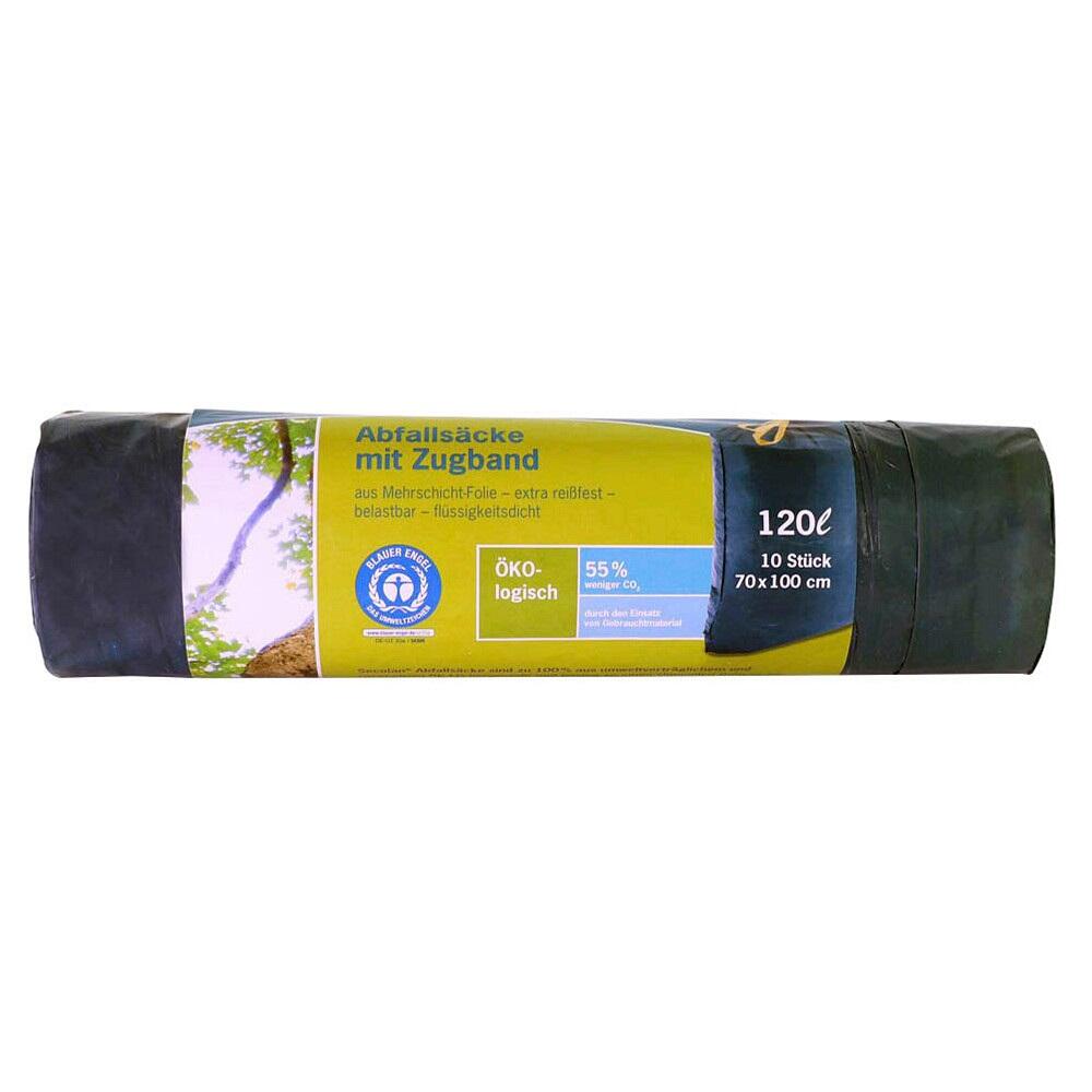 Die Secolan Müllbeutel mit einem Volumen von 120 Litern in der ansprechenden Farbe Blau sind die perfekte Lösung für deine Abfallentsorgung. Diese praktischen Müllbeutel sind mit Zugbändern ausgestattet, die ein schnelles und einfaches Verschließen ermöglichen. So kannst du deinen Müll problemlos und hygienisch entsorgen, ohne dir Gedanken über ein Auslaufen oder ein ungewolltes Öffnen machen zu müssen. Ein weiterer herausragender Vorteil der Secolan Müllbeutel ist ihre umweltfreundliche Zusammensetzung. Sie bestehen zu 100% aus regeneriertem Kunststoff, was sie zu einer nachhaltigen Wahl für umweltbewusste Verbraucher macht. Mit diesen Müllbeuteln trägst du aktiv zur Reduzierung von Plastikmüll bei und schaffst gleichzeitig eine saubere und ordentliche Umgebung. Die Stärke von 35,0 µm sorgt dafür, dass die Müllbeutel robust und strapazierfähig sind. Sie sind darauf ausgelegt, auch schwerere Abfälle sicher zu halten, ohne dass du dir Sorgen um Risse oder Beschädigungen machen musst. Egal, ob du sie für den Haushalt, den Garten oder für Veranstaltungen verwendest, die Secolan Müllbeutel bieten dir die Zuverlässigkeit, die du benötigst. Die Lieferung erfolgt im praktischen Set von 10 Stück, sodass du stets ausreichend Vorrat hast. Mit den Secolan Müllbeuteln kannst du sicherstellen, dass deine Abfallentsorgung effizient und umweltfreundlich erfolgt. Entscheide dich für die Secolan Müllbeutel 120l blau und erlebe die Kombination aus Funktionalität, Nachhaltigkeit und Benutzerfreundlichkeit.Technische Daten