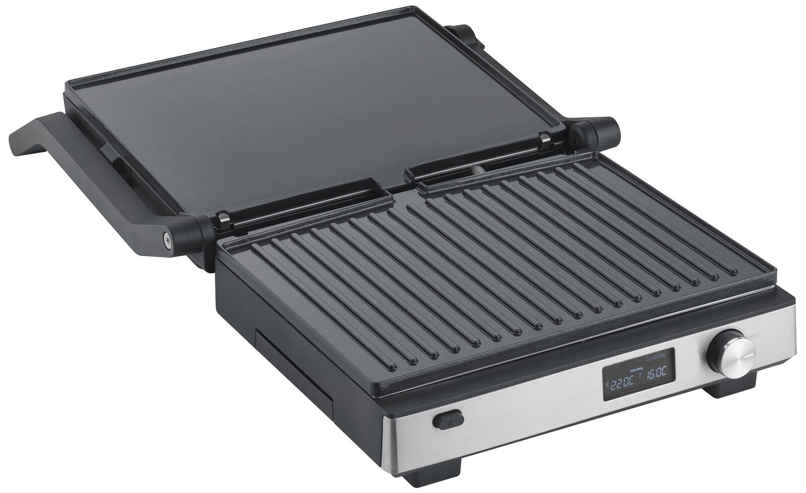 Das elegante Design in Schwarz und Silber fügt sich harmonisch in jede Küche ein und unterstreicht die moderne Optik des Geräts. Der Kontaktgrill aus der SEVERIN Multi Kontaktgrill3in1 Serie ist nicht nur funktional, sondern auch robust und langlebig. Mit diesem Gerät genießen Sie eine einfache und schnelle Zubereitung von gegrillten Speisen – ideal für den Haushalt, der Wert auf Qualität und Vielseitigkeit legt.