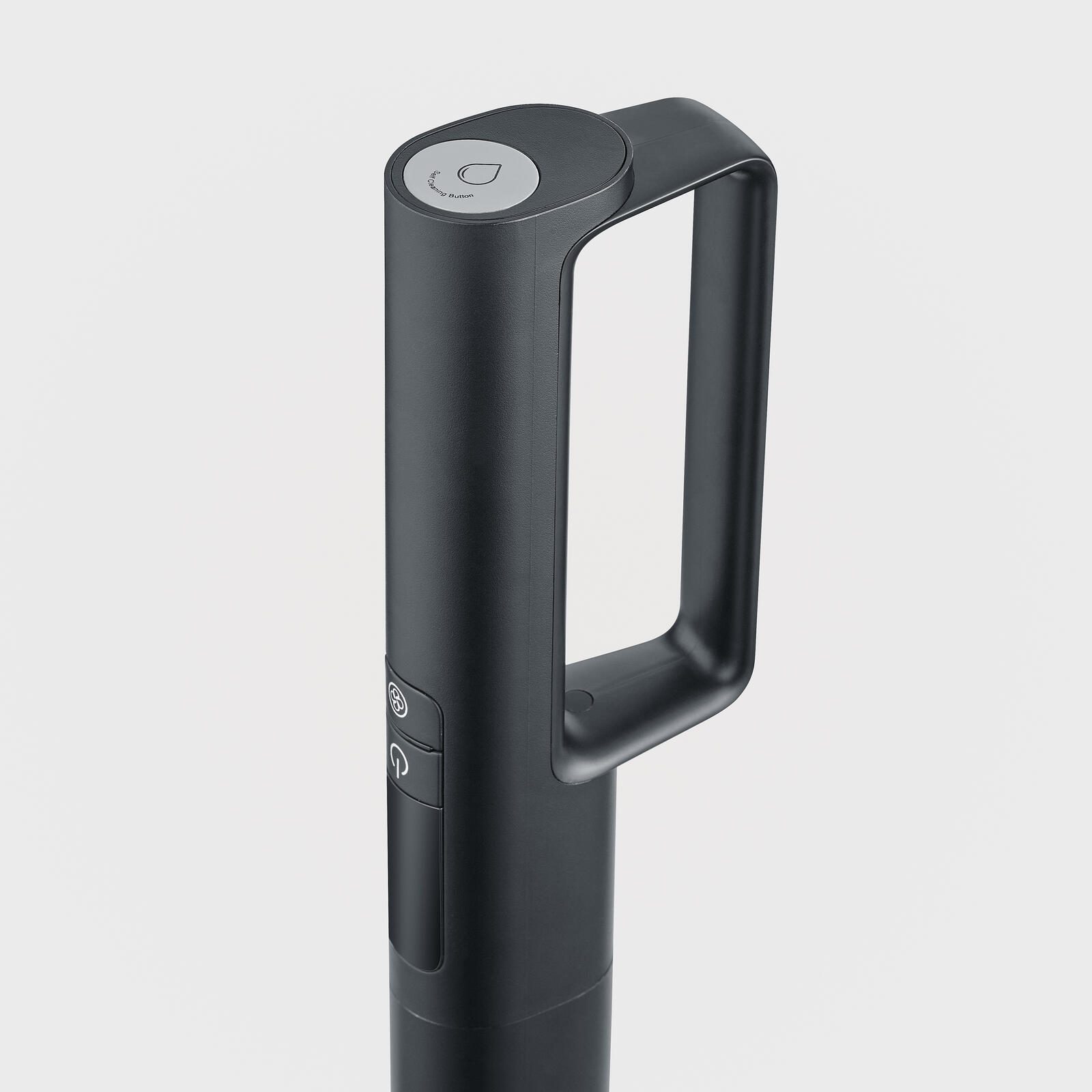 Das elegante schwarze Design fügt sich unauffällig in jede Wohnumgebung ein, während die zwei Räder für eine angenehme Handhabung und gute Manövrierbarkeit sorgen. Die Kombination aus Saugen und Wischen in einem Gerät erleichtert die Bodenpflege und spart Zeit, indem Staub und Schmutz gleichzeitig entfernt werden.
