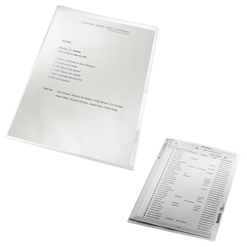 Die LEITZ Sichthüllen DIN A4 transparent sind die perfekte Lösung für die sichere und übersichtliche Aufbewahrung deiner Dokumente. Mit einer Stärke von 0.13 mm bieten diese Hüllen einen zuverlässigen Schutz für deine Unterlagen, während die genarbte Oberfläche dafür sorgt, dass Fingerabdrücke und Kratzer minimiert werden. Diese transparenten Hüllen ermöglichen es dir, wichtige Informationen klar und deutlich zu präsentieren, ohne dass der Inhalt beeinträchtigt wird. Hergestellt aus recyceltem Polypropylen (PP) sind diese Sichthüllen nicht nur umweltfreundlich, sondern auch äußerst langlebig. Die Verwendung von hochwertigem Material garantiert, dass deine Dokumente vor Staub, Schmutz und Beschädigungen geschützt sind. Mit einer Öffnung sowohl oben als auch seitlich sind die Hüllen besonders benutzerfreundlich und ermöglichen ein einfaches Einlegen und Entnehmen der Dokumente. Die LEITZ Sichthüllen sind in einer praktischen Packung mit 100 Stück erhältlich, was sie zur idealen Wahl für Büro, Schule oder Zuhause macht. Egal, ob du wichtige Verträge, Präsentationen oder persönliche Unterlagen aufbewahren möchtest, diese Hüllen bieten dir die Flexibilität und den Schutz, den du benötigst. Der Aufdruck „dokumentenecht“ stellt sicher, dass deine Dokumente in einem einwandfreien Zustand bleiben, ohne dass sie durch die Hülle beeinträchtigt werden. Mit diesen transparenten Sichthüllen von LEITZ kannst du nicht nur Ordnung schaffen, sondern auch einen professionellen Eindruck hinterlassen. Sie sind die ideale Wahl für alle, die Wert auf Qualität und Nachhaltigkeit legen.Technische Daten