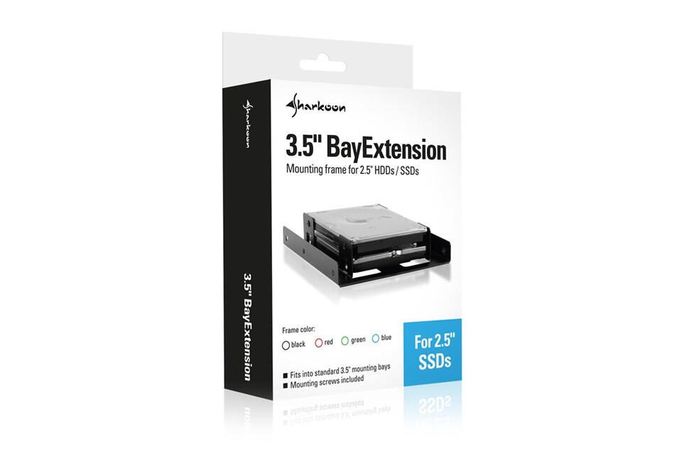 Sharkoon 3,5" BayExtension Einbaurahmen, schwarz ermögicht die Montage von bis zu zwei 2,5-Zoll-Festplatten oder SSDs