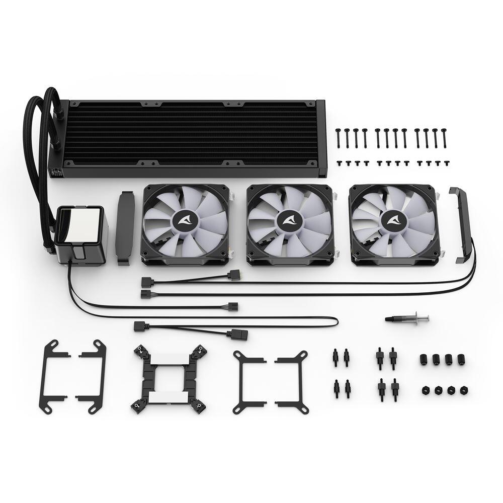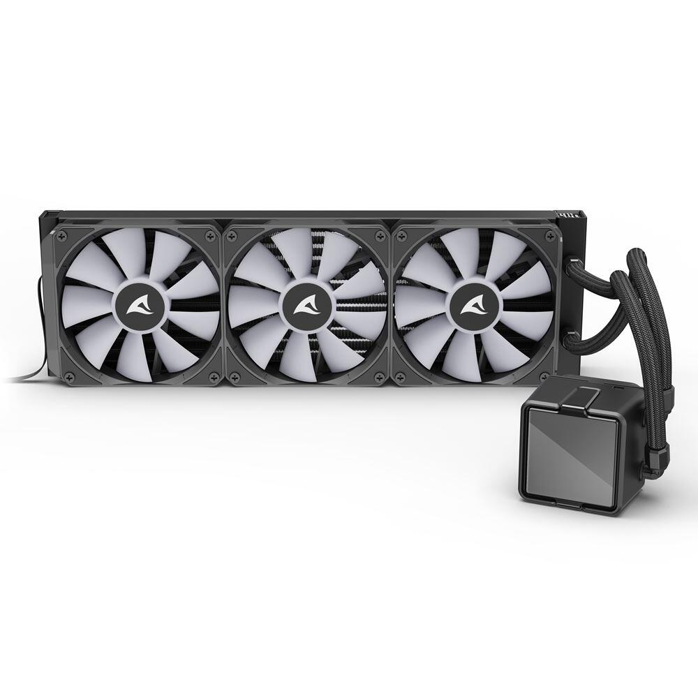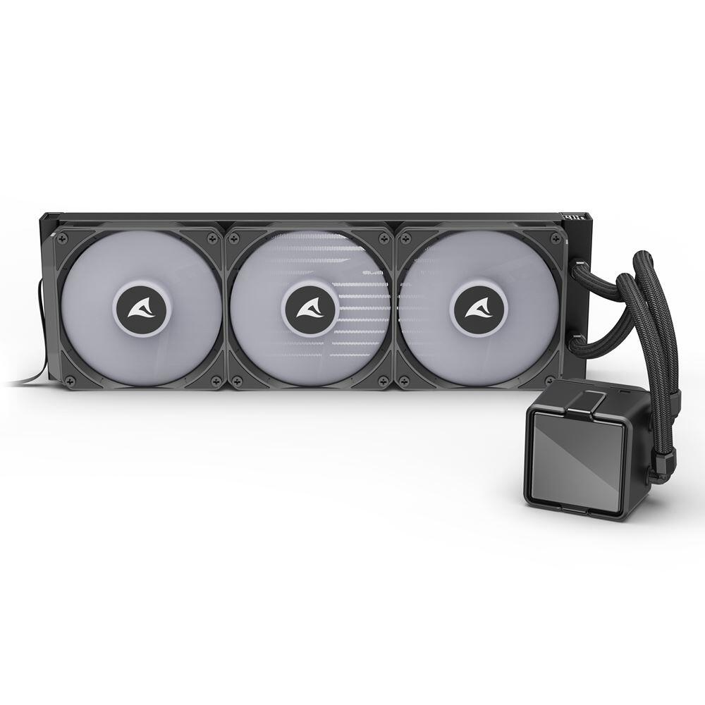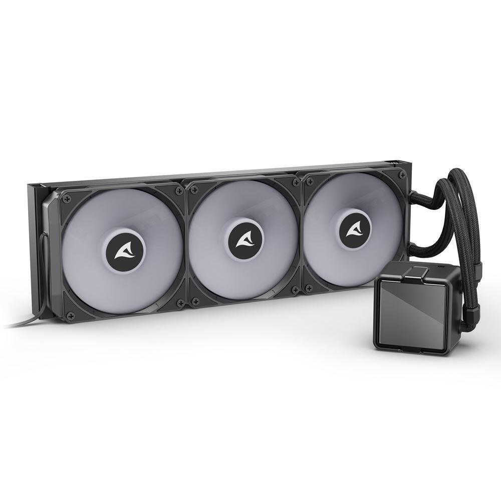 Die S100 ARGB von Sharkoon ist eine All-in-One-Wasserkühlung mit 360-mm-Radiator, die eine eindrucksvolle Optik mit starker Kühlleistung kombiniert. Ihr extragroßer Pumpenkopf mit Infinity-Spiegel-Effekt sorgt für ein einzigartiges Lichtspiel, während eine Kupferplatte, drei präzise steuerbare ARGB-PWM-Lüfter sowie die beiliegende DOWSIL™-Wärmeleitpaste für zuverlässige Kühlung und maximale Effizienz stehen.