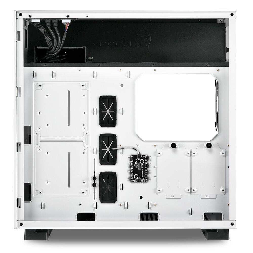 Rich Illumination within the RGB Spectrum. The bottom and back panel of the PURE STEEL RGB have a total of four pre-installed 120 mm fans with addressable LEDs. These can be illuminated in 16.8 million colors via mainboards which have headers for addressable RGB LEDs (pin configuration 5V-D-coded-G or 5V-D-G). For incompatible mainboards, the included addressable RGB controller enables the illumination of up to eight LED components in 14 lighting effects.