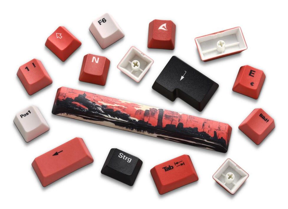 Das Set enthält 85 PBT-Tastenkappen die speziell für deutsche Tastatur-Layouts mit 75-Prozent-Formfaktor entwickelt wurden.