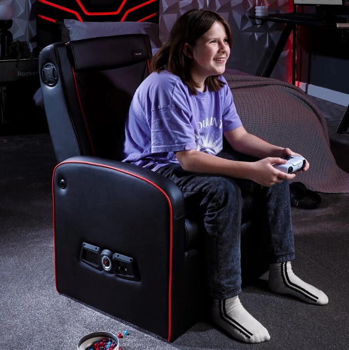 X Rocker Shift Luxe Junior 2.1 Ottoman Gaming-Sessel mit Stereo-Lautsprechersystem und Subwoofer - schwarz/rot