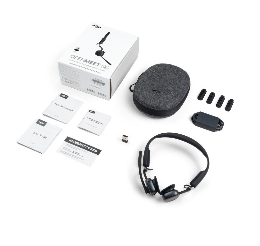 Das SHOKZ OpenMeet UC verfügt über ein Mikrofon mit Schwanenhals, das mithilfe der cVc-Technologie von Qualcomm Geräusche unterdrückt und so dafür sorgt, dass Ihre Stimme klar und deutlich aufgenommen wird, während Hintergrundgeräusche minimiert werden. - Komfortables und leichtes Design