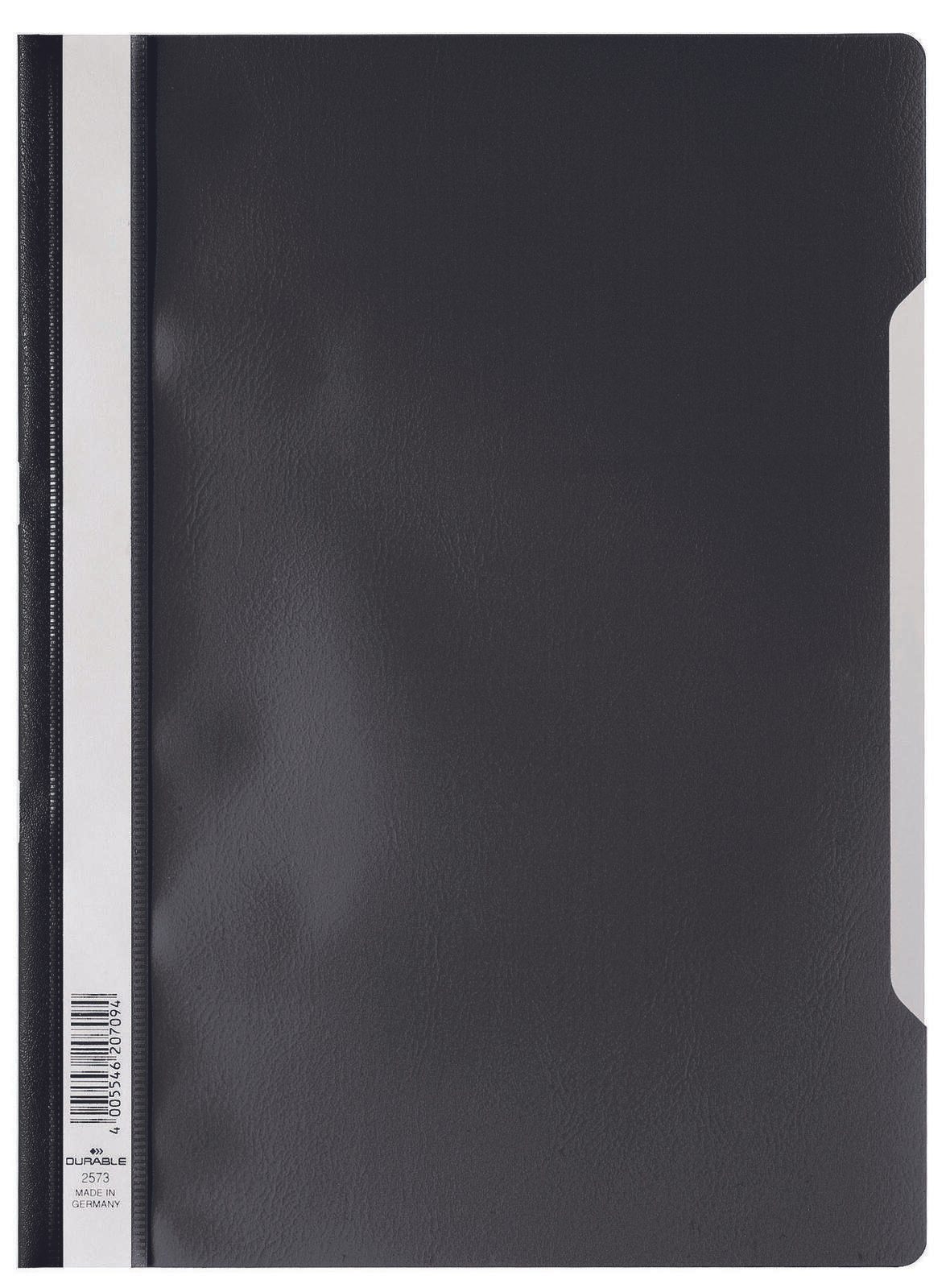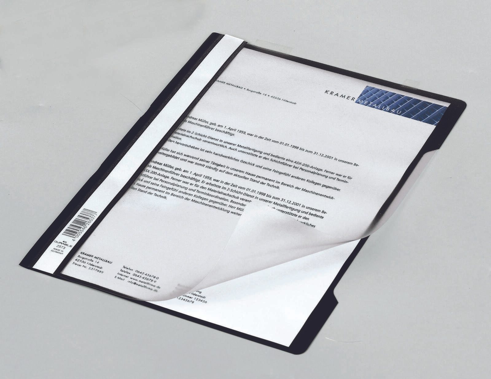 Der DURABLE Schnellhefter DIN A4 aus hochwertigem Polypropylen (PP) in elegantem Schwarz ist die ideale Lösung, um deine Dokumente ordentlich und übersichtlich zu präsentieren. Mit seiner robusten Konstruktion bietet dieser Schnellhefter nicht nur Langlebigkeit, sondern auch eine ansprechende Optik, die in jedem Büro oder bei Präsentationen überzeugt. Die kaufmännische Heftung sorgt dafür, dass deine Unterlagen sicher an ihrem Platz bleiben. Du kannst bis zu 150 Blatt in diesem praktischen Schnellhefter unterbringen, was ihn perfekt für umfangreiche Berichte, Präsentationen oder wichtige Dokumentationen macht. Die transparente Vorderseite ermöglicht es dir, den Inhalt auf einen Blick zu erkennen, während die schwarze Farbe des Schnellheftes einen professionellen Eindruck hinterlässt. Der DURABLE Schnellhefter ist speziell für das DIN A4 Format konzipiert, sodass du sicher sein kannst, dass deine Unterlagen perfekt hineinpassen. Mit einer Packung, die 10 Stück umfasst, hast du genügend Vorrat, um deine Dokumente für verschiedene Anlässe zu organisieren. Egal, ob du im Büro, in der Schule oder zu Hause bist, dieser Schnellhefter ist ein unverzichtbares Hilfsmittel, das dir hilft, deine Unterlagen strukturiert und griffbereit zu halten. Die Verwendung von Polypropylen als Material garantiert nicht nur eine hohe Widerstandsfähigkeit, sondern auch eine einfache Handhabung. Der DURABLE Schnellhefter ist somit nicht nur funktional, sondern auch eine stilvolle Ergänzung zu deinem Bürobedarf. Vertraue auf die Qualität und die durchdachte Funktionalität von DURABLE, um deine Dokumente optimal zu verwalten.Technische Daten