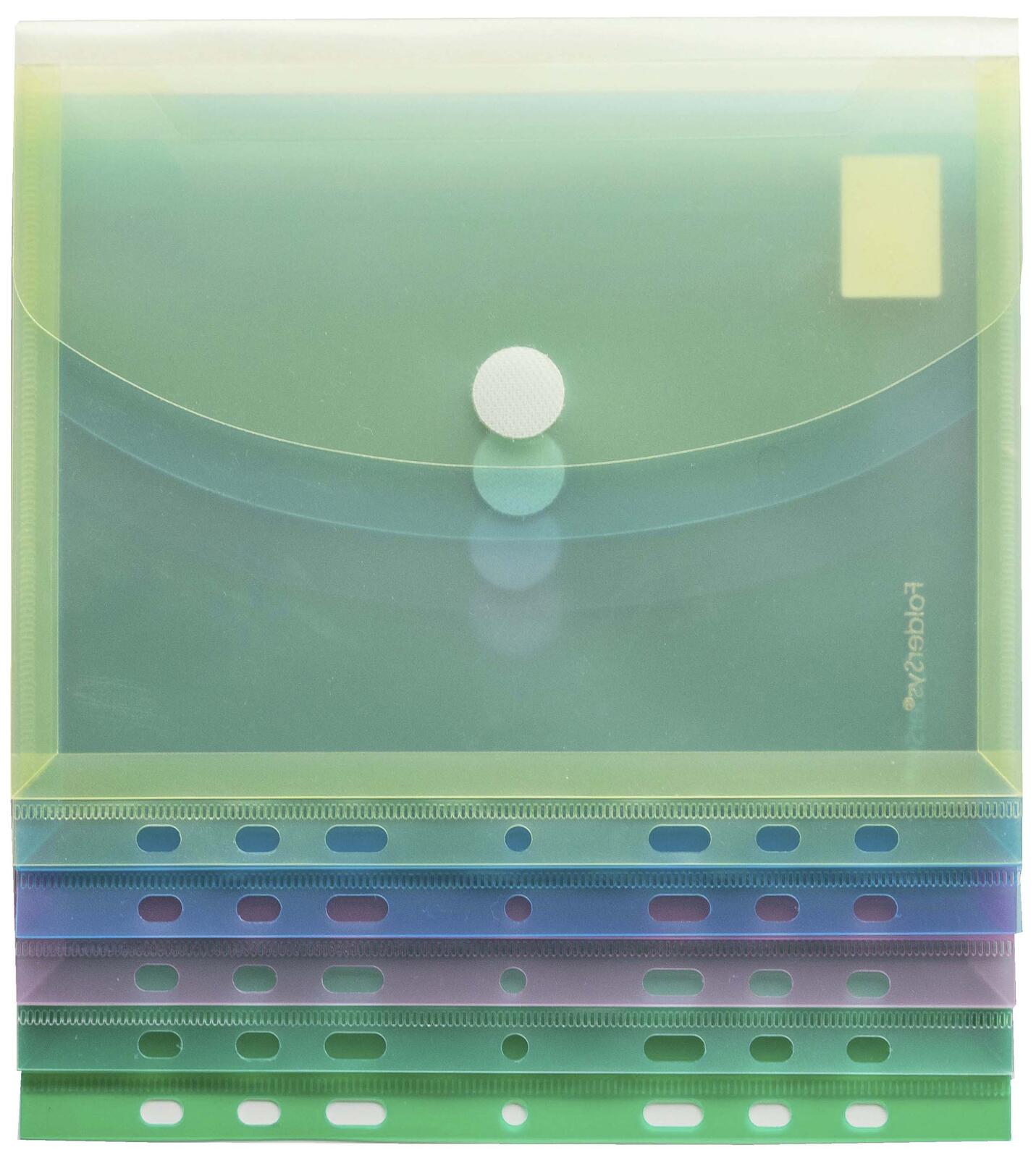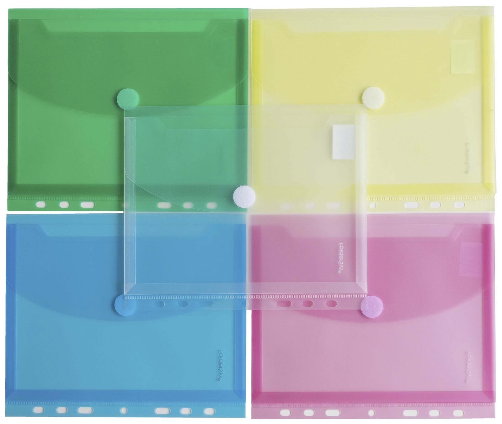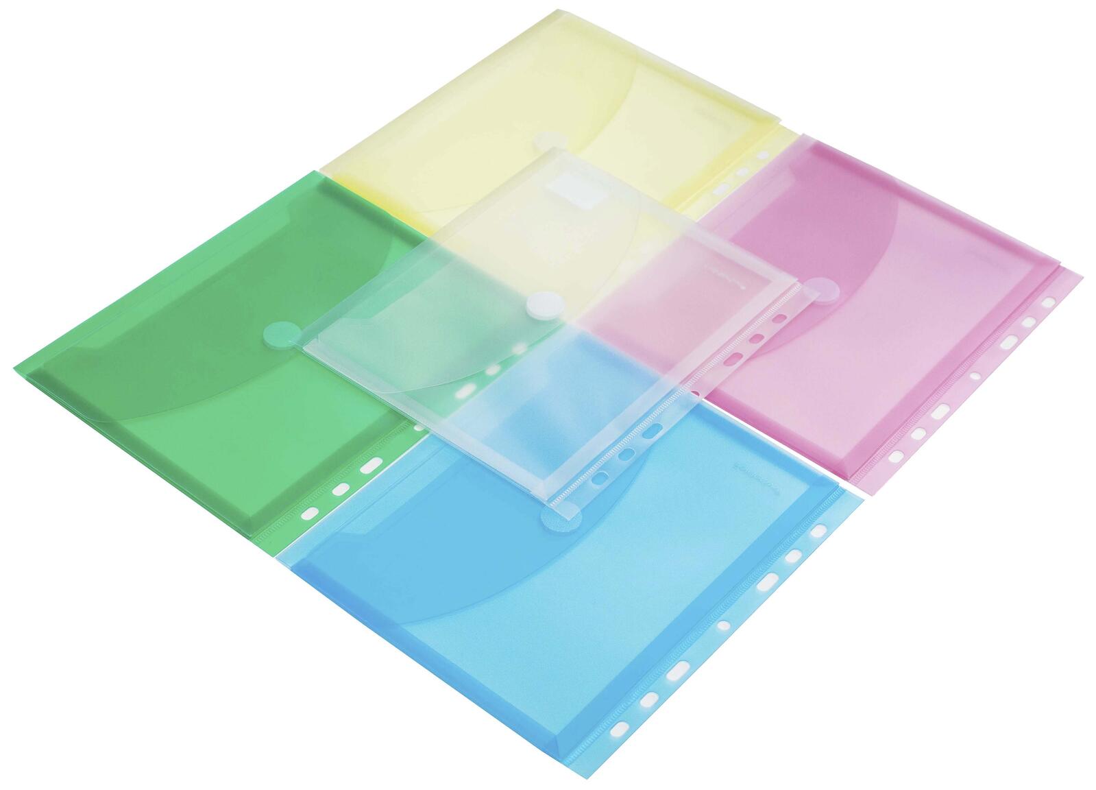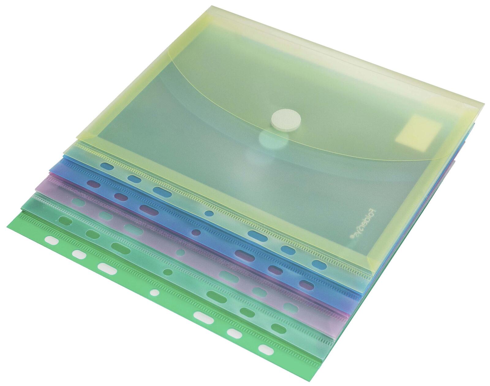 Die FolderSys Dokumententaschen A5 0.2 mm farbsortiert bieten eine praktische und stilvolle Lösung zur Aufbewahrung und Organisation deiner Dokumente. Mit einem cleveren Klettverschluss ausgestattet, gewährleisten sie, dass deine Unterlagen sicher und griffbereit sind. Diese Taschen sind nicht nur funktional, sondern auch optisch ansprechend, da sie in einer attraktiven Farbzusammenstellung erhältlich sind. Du erhältst je zwei Stück in den Farben Blau, Grün, Gelb, Rot und Transparent, was dir ermöglicht, deine Unterlagen nach Belieben zu sortieren und zu kategorisieren. Die seitliche Öffnung der Dokumententaschen erleichtert das Einlegen und Entnehmen von Dokumenten, während die Universal-Lochung dir die Flexibilität bietet, die Taschen in gängige Ordner oder Ringbücher abzuheften. Mit einer Dehnfalte von 2,0 cm kannst du auch dickere Stapel von Dokumenten problemlos unterbringen, ohne dass die Taschen überlastet werden. Das genarbte Polypropylen (PP) sorgt nicht nur für eine ansprechende Haptik, sondern macht die Taschen auch dokumentenecht und langlebig. Ob für die Schule, das Büro oder zu Hause – die FolderSys Dokumententaschen sind eine hervorragende Wahl für alle, die Wert auf Ordnung und Übersichtlichkeit legen. In einer Packung erhältst du insgesamt 10 Stück, was sie zu einer praktischen und kosteneffizienten Lösung für deine Dokumentenorganisation macht. Mit diesen Taschen behältst du immer den Überblick über deine wichtigen Unterlagen und sorgst gleichzeitig für einen farbenfrohen Akzent in deinem Arbeitsumfeld.Technische Daten