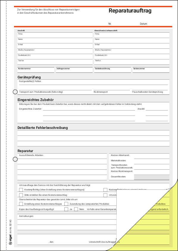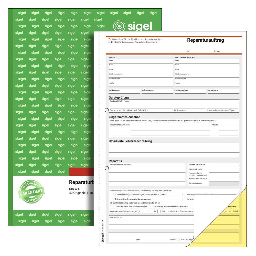 SIGEL Erfassung der Reparatur, Formularbuch