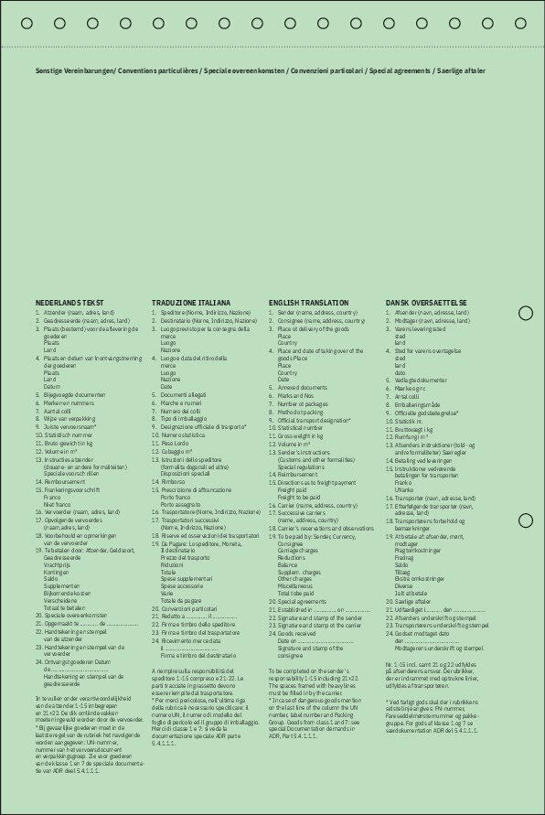 Das verwendete Papier ist holzfrei und mit einer Microperforation versehen, die ein einfaches und sauberes Trennen der einzelnen Seiten ermöglicht. Die Frachtbriefe sind nicht chlorfrei gebleicht. Die klare und strukturierte Gestaltung der Formulare erleichtert die Dokumentation und Abwicklung von Transportaufträgen im Rahmen des CMR-Abkommens.