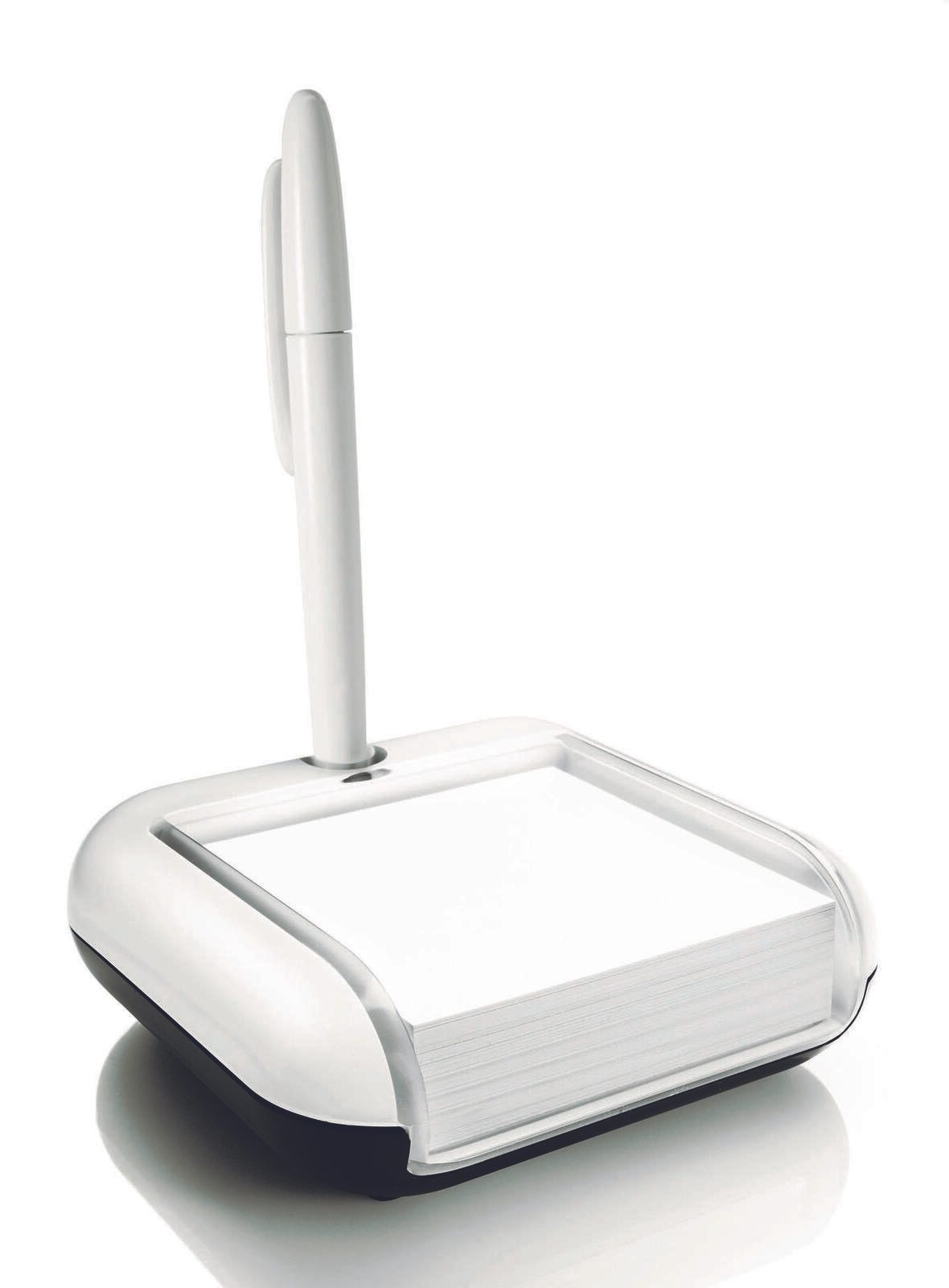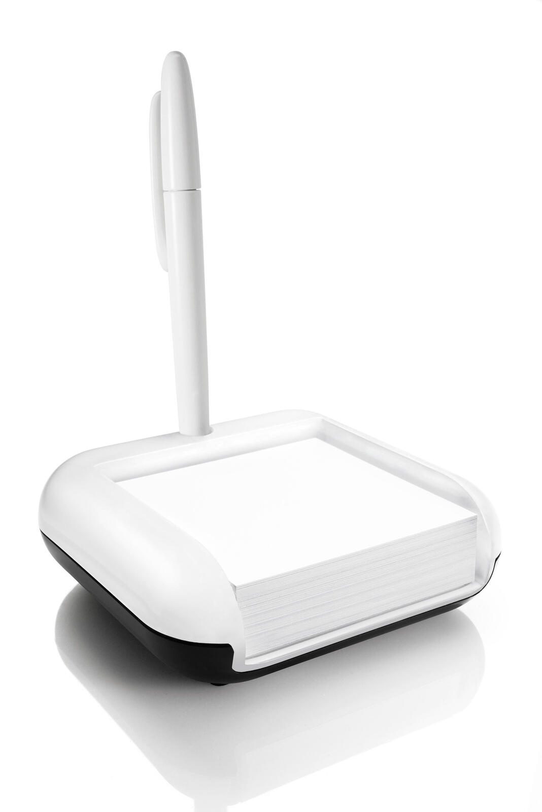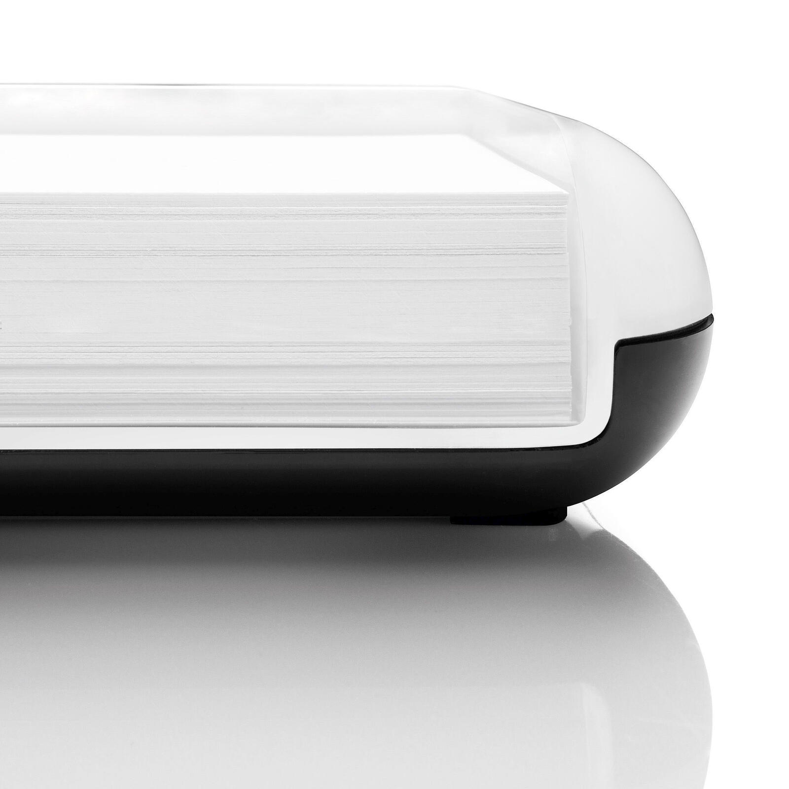 Die Zettelbox in strahlendem Weiß überzeugt nicht nur durch ihr zeitloses Design, sondern auch durch ihre praktische Ausführung mit integriertem Stiftehalter. Die Maße von 11,0 x 11,0 x 4,0 cm machen sie zu einem platzsparenden und dennoch funktionalen Arbeitsutensil.