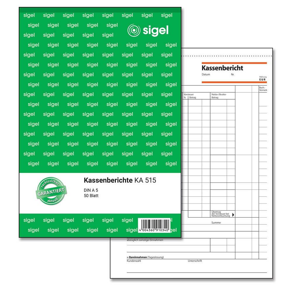 - Kassenbericht, Format A5, für die korrekte Ermittlung des Tagesabschlusses