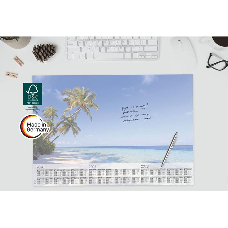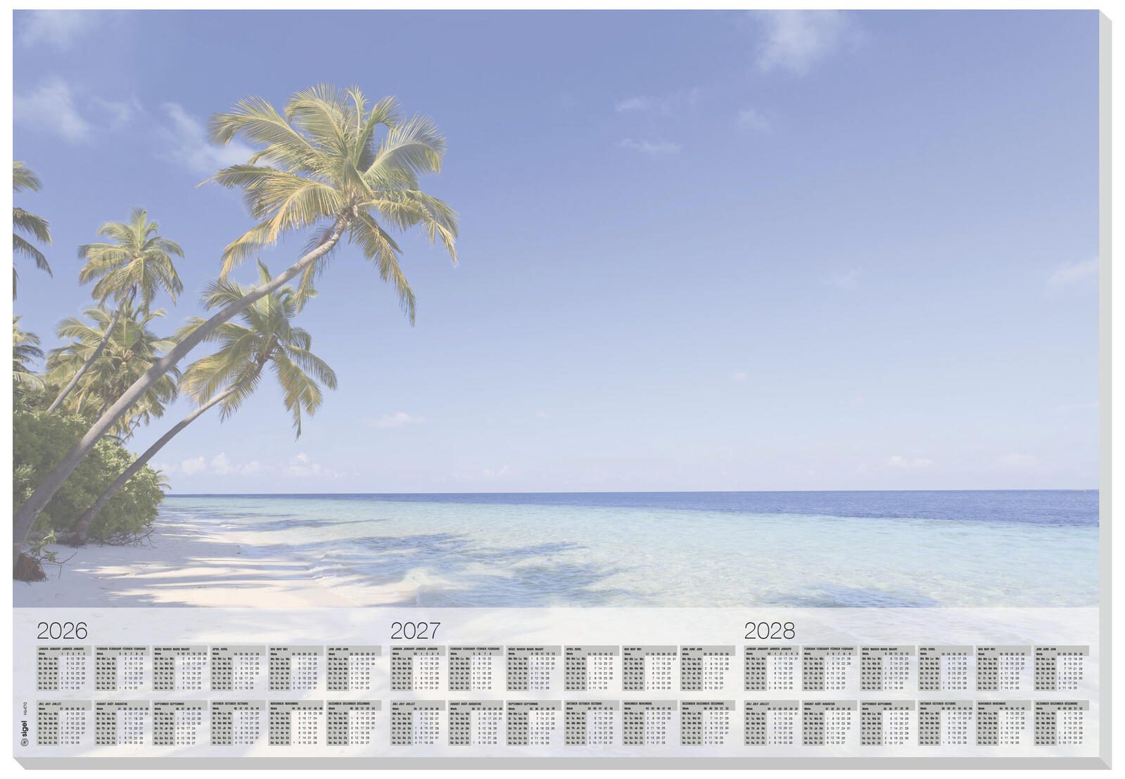SIGEL Schreibtischunterlage Beach 2026/2027/208 blau Papier 59,5 x 41,0 cm, 30 Blatt