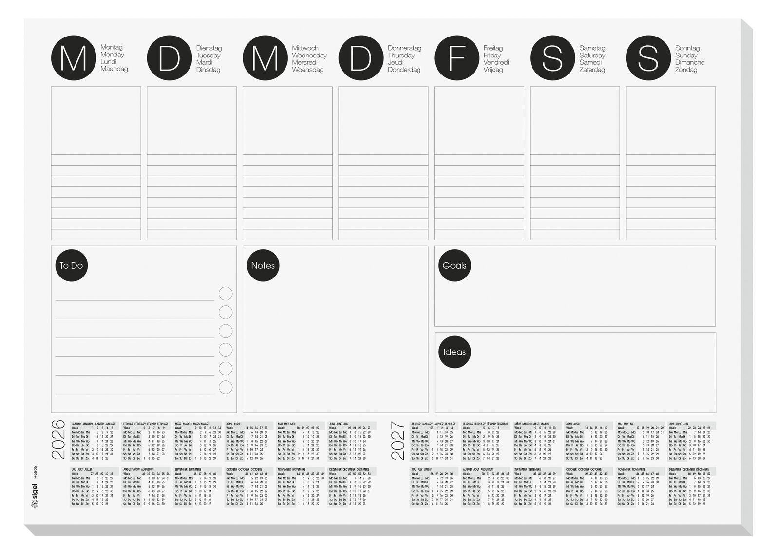 SIGEL Schreibtischunterlage WOCHENPLANER 2026/2027 schwarz/weiß Papier 42,0 x 29,7 cm, 30 Blatt