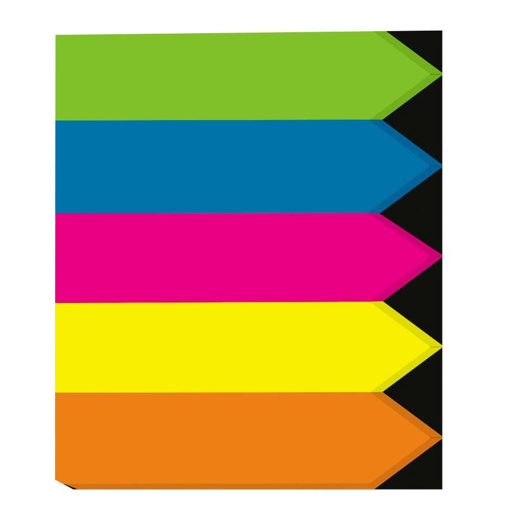 Reißfeste Haftmarker in Pfeilform aus Folie in den Farben Grün, Blau, Pink, Gelb und Orange. Besonders geeignet zur punktgenauen Markierung von Textstellen oder Bildern. Die Marker sind beschriftbar, rückstandsfrei wiederablösbar und