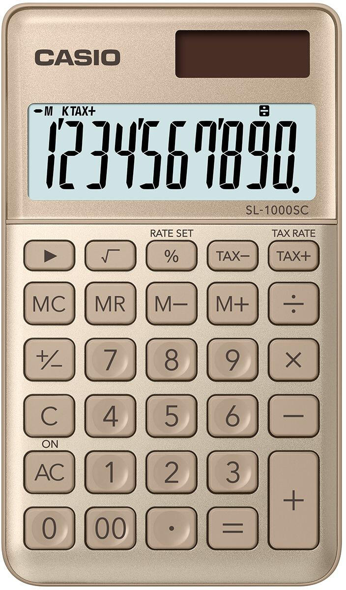 Der CASIO Taschenrechner SL-1000SC in elegantem Gold bietet eine perfekte Kombination aus Funktionalität und ansprechendem Design. Mit seiner Steuerberechnung und der praktischen Abschaltautomatik ist dieser Taschenrechner ideal für alle, die Wert auf Effizienz und Benutzerfreundlichkeit legen. Die goldene Farbgebung verleiht ihm eine stilvolle Note, die sowohl im Büro als auch im akademischen Umfeld Eindruck macht.