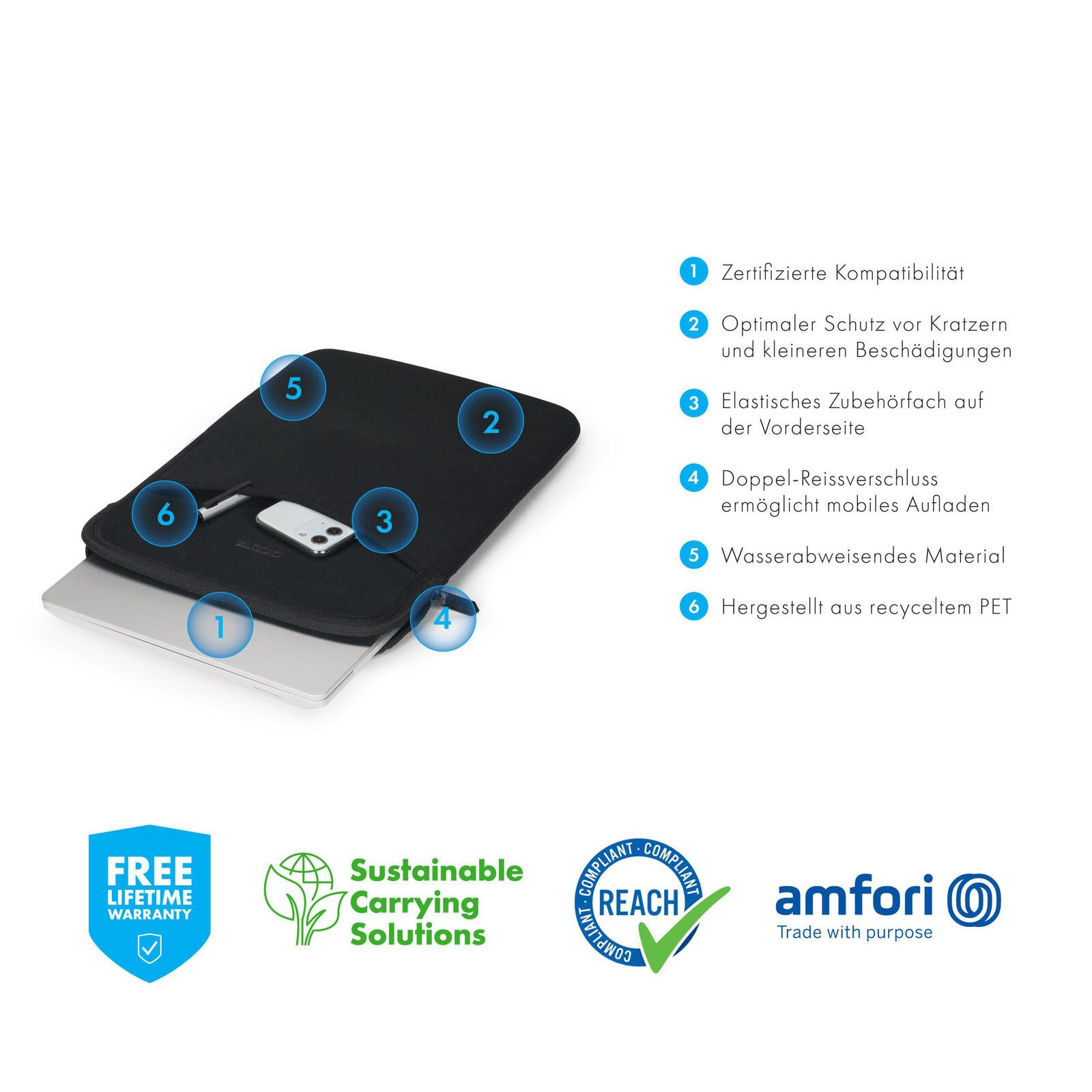 - Doppel-Reissverschluss ermöglicht mobiles Aufladen und einfachen Zugriff