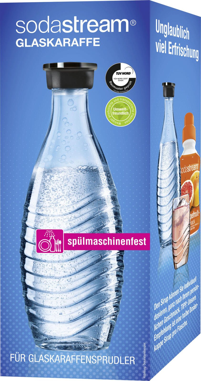 Die sodastream Flasche 0,6 l transparent ist die ideale Lösung für alle, die ihren Durst stilvoll stillen möchten. Mit einem Fassungsvermögen von 0,6 Litern bietet diese elegante Glaskaraffe ausreichend Platz für deine Lieblingsgetränke, sei es sprudelndes Wasser oder aromatisierte Erfrischungen. Das hochwertige Glasmaterial sorgt nicht nur für eine ansprechende Optik, sondern garantiert auch eine lange Lebensdauer und Robustheit. Die transparente Farbe der Flasche ermöglicht es dir, den Inhalt jederzeit im Blick zu behalten, sodass du genau siehst, wie viel du noch hast. Zudem ist die sodastream Flasche spülmaschinenfest, was die Reinigung nach dem Gebrauch zum Kinderspiel macht. Du kannst sie einfach in die Spülmaschine stellen, ohne dir Gedanken über mögliche Beschädigungen machen zu müssen. Mit der sodastream Glaskaraffe 0,6l bringst du nicht nur Funktionalität, sondern auch einen Hauch von Eleganz in deinen Alltag. Die schlichte und moderne Gestaltung passt perfekt in jede Küche oder auf jeden Tisch und macht sie zu einem attraktiven Accessoire für deine Getränke. Ob für den täglichen Gebrauch oder besondere Anlässe, diese Flasche ist vielseitig einsetzbar und wird schnell zu deinem neuen Lieblingsstück. Entscheide dich für die sodastream Flasche 0,6 l transparent und genieße die Vorteile eines hochwertigen Produkts, das sowohl praktisch als auch stilvoll ist.Technische Daten